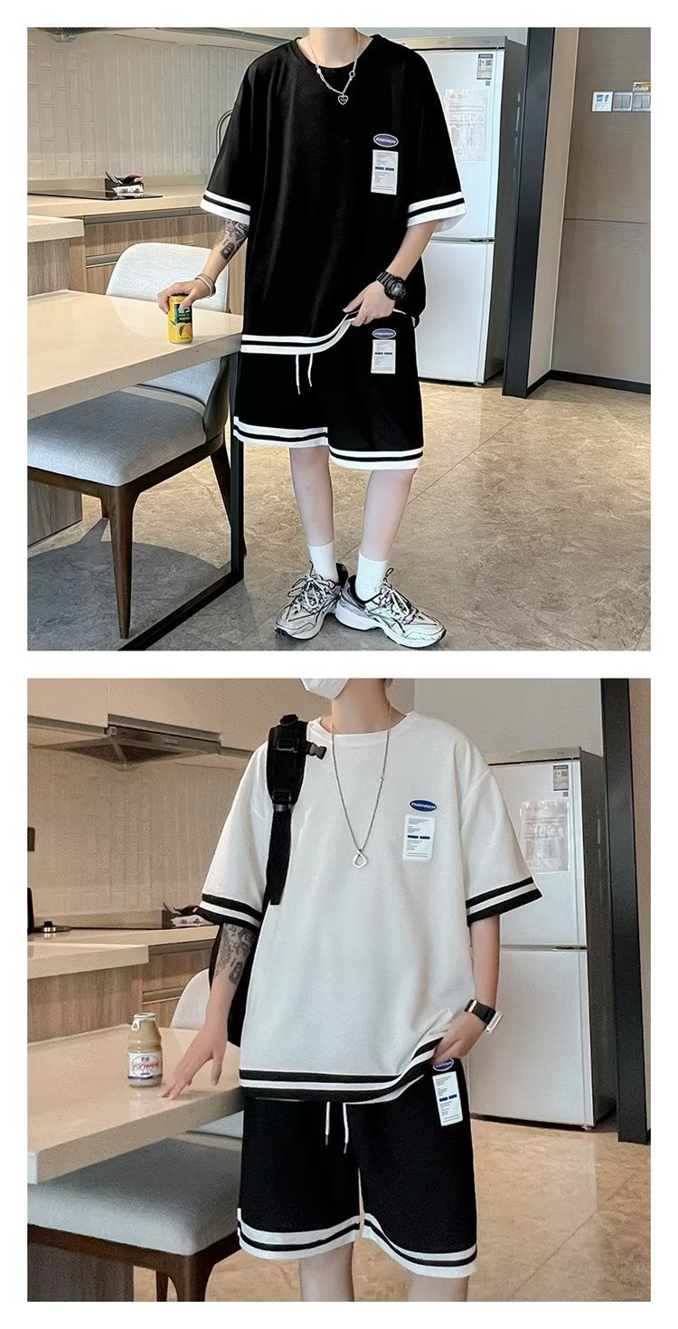 2022 새로운 반팔 티셔츠 남자의 여름 반바지 패션 스포츠 세트 패션 브랜드 느슨한 잘 생긴 캐주얼 투피스 세트스토어 가기