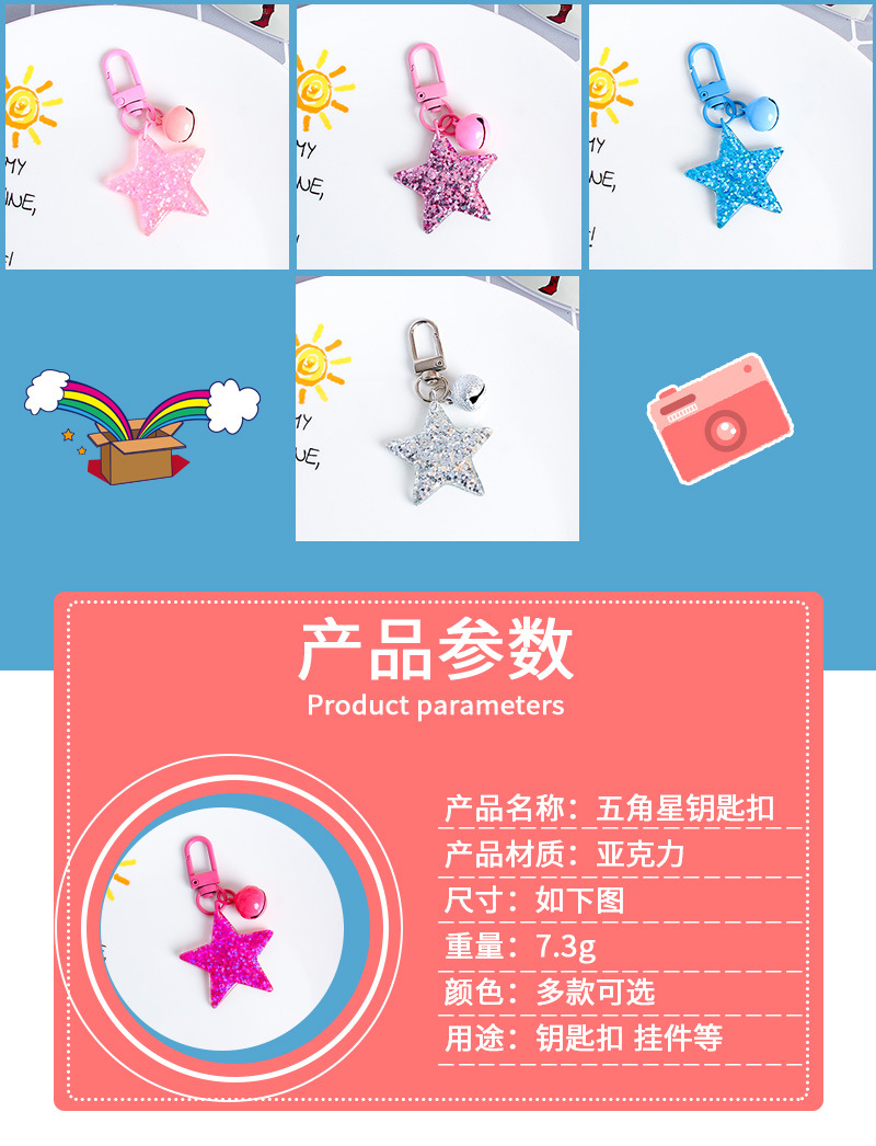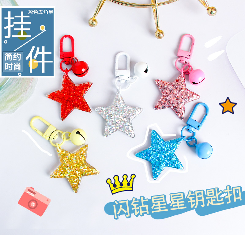 DIY 개성 플래시 다이아몬드 다섯개 별 열쇠 고리 펜던트 캔디 컬러 반짝이 스타 심플 패션 가방 매달려 액세서리스토어 가기