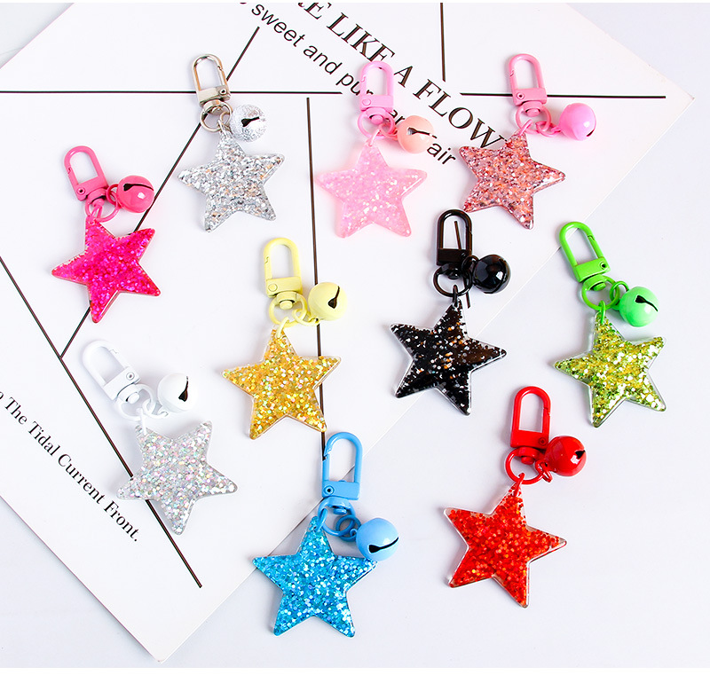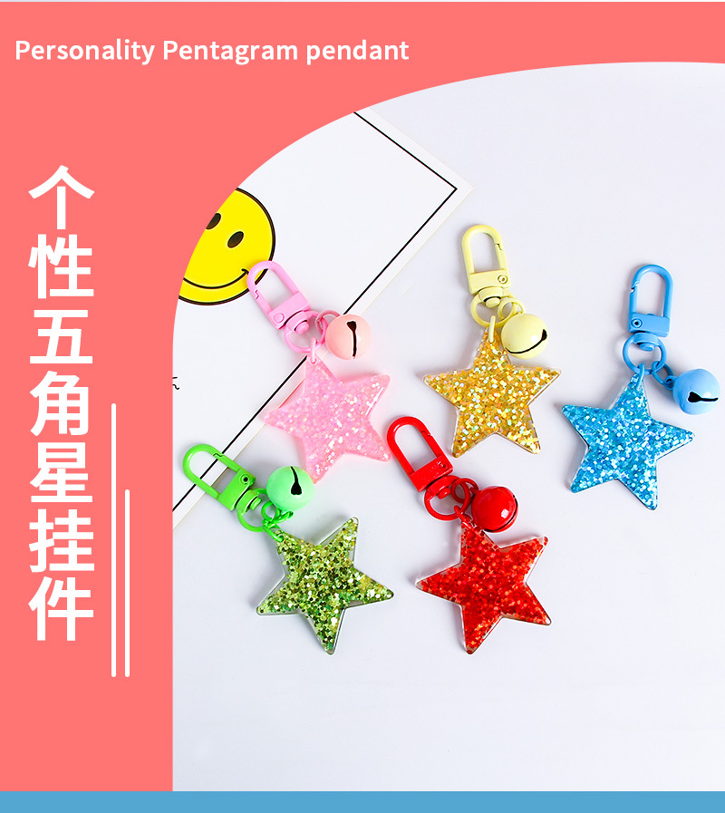 DIY 개성 플래시 다이아몬드 다섯개 별 열쇠 고리 펜던트 캔디 컬러 반짝이 스타 심플 패션 가방 매달려 액세서리