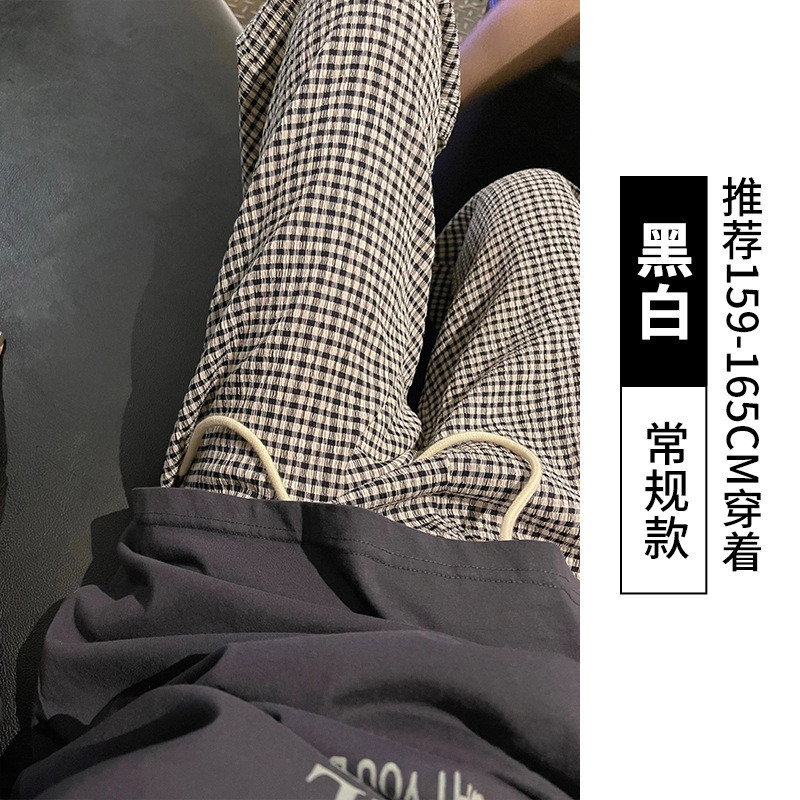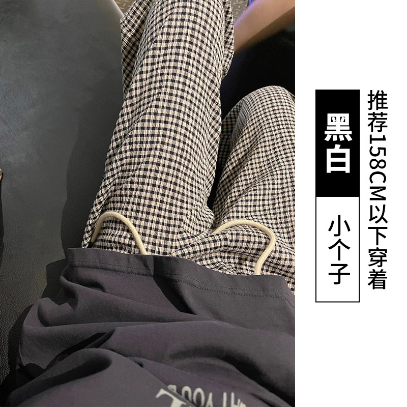 체크무늬 와이드 팬츠 여성용 여름 하이웨이스트 루즈핏 슬림핏 팬츠 올매치 얇은 드로스트링 캐주얼 팬츠 H998