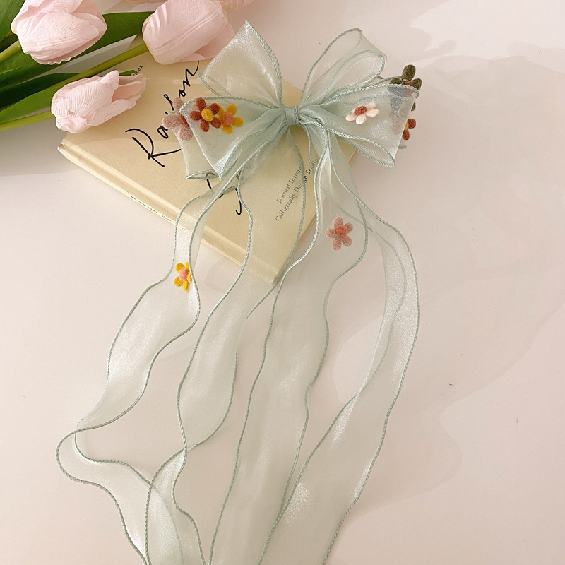 • F8109-6 # 민트 그린 롱 리본 활
