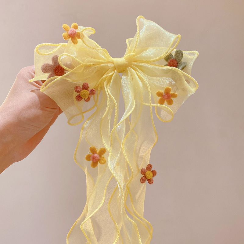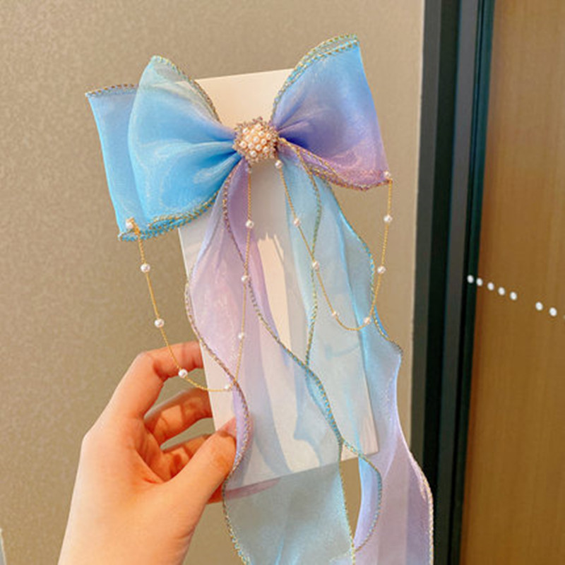 어린이 헤어 밴드 여성 화려한 활 땋은 머리핀 어린 소녀 공주 긴 깃발 머리핀 여름 소녀 헤어 액세서리