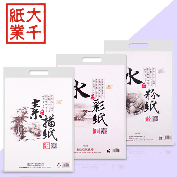 Da Qian 4 피스 스케치 용지 구 아슈 용지 8K 수채화 용지 160g G 20 매/백 우드 펄프 화이트 페인팅 낙서 스케치