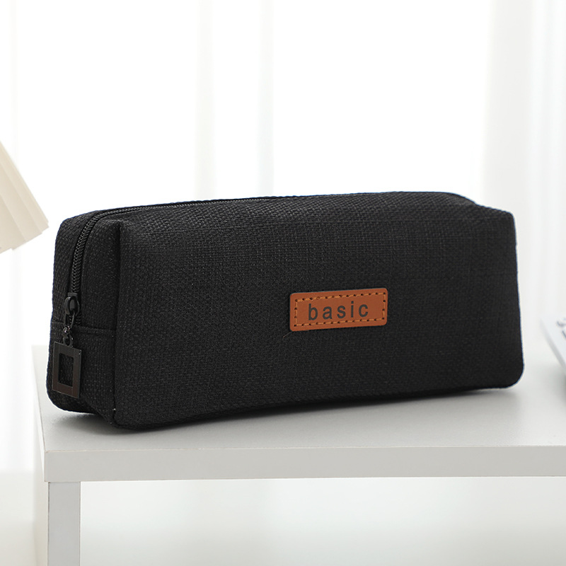 크로스 보더 싱글 레이어 대용량 연필 가방 도매 단색 중학생 사각 면 린넨 연필 가방 학생 간단 문구 가방스토어 가기