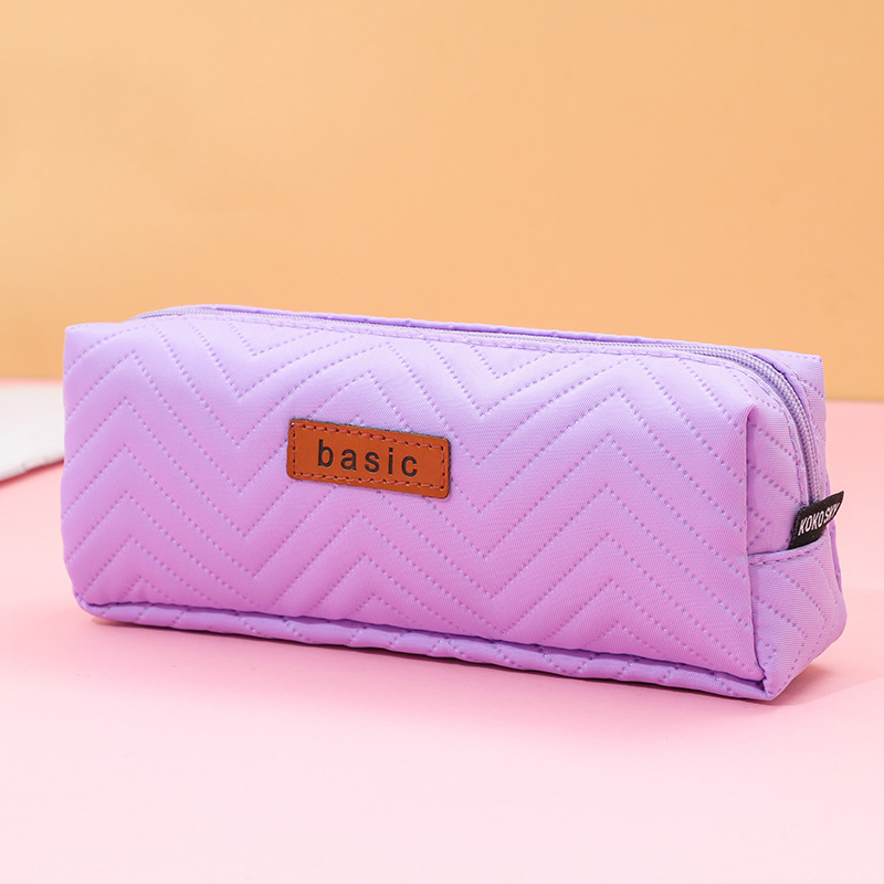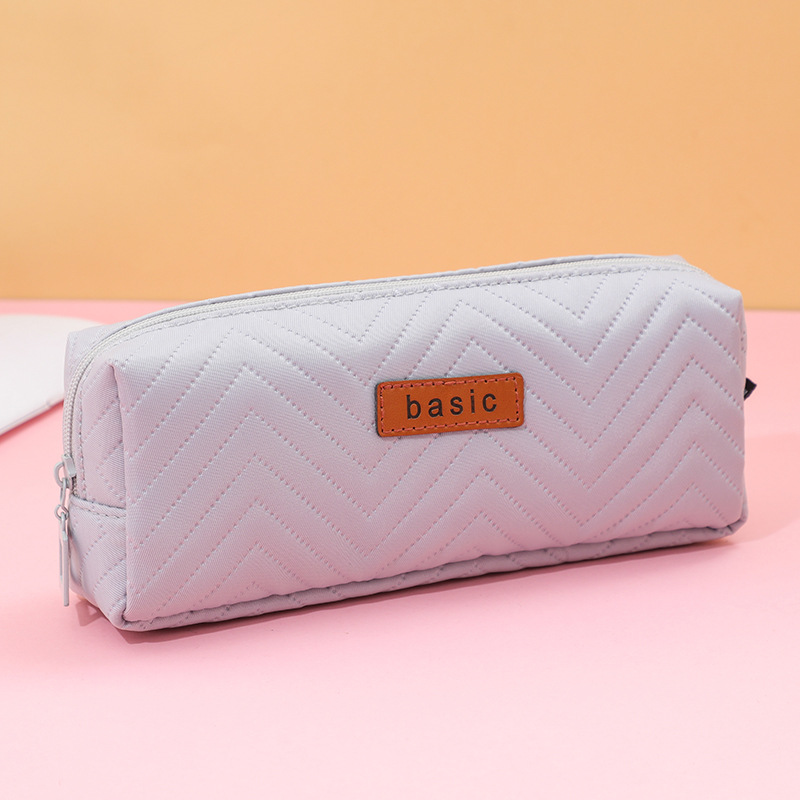 크로스 보더 싱글 레이어 대용량 연필 가방 도매 단색 중학생 사각 면 린넨 연필 가방 학생 간단 문구 가방