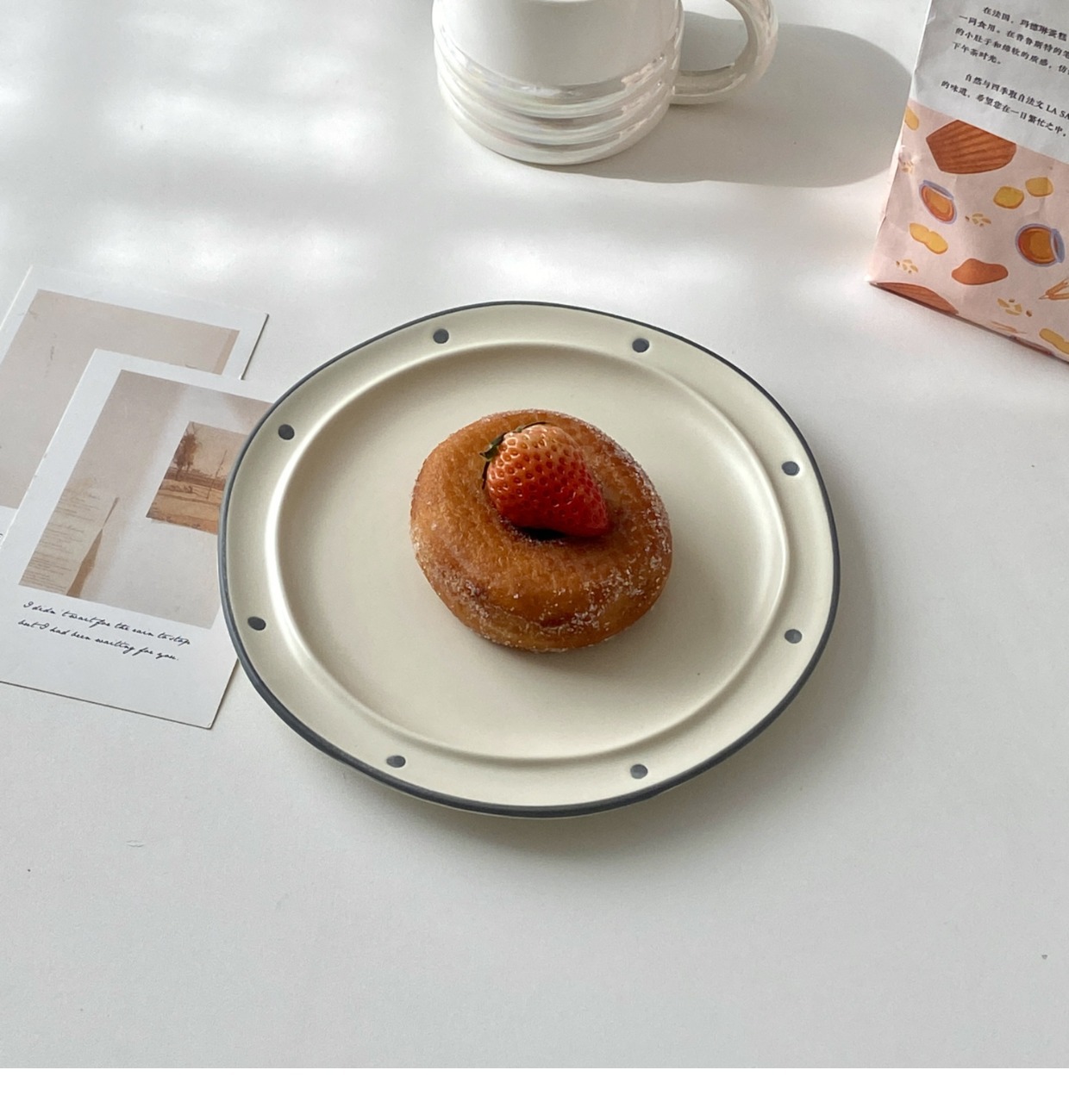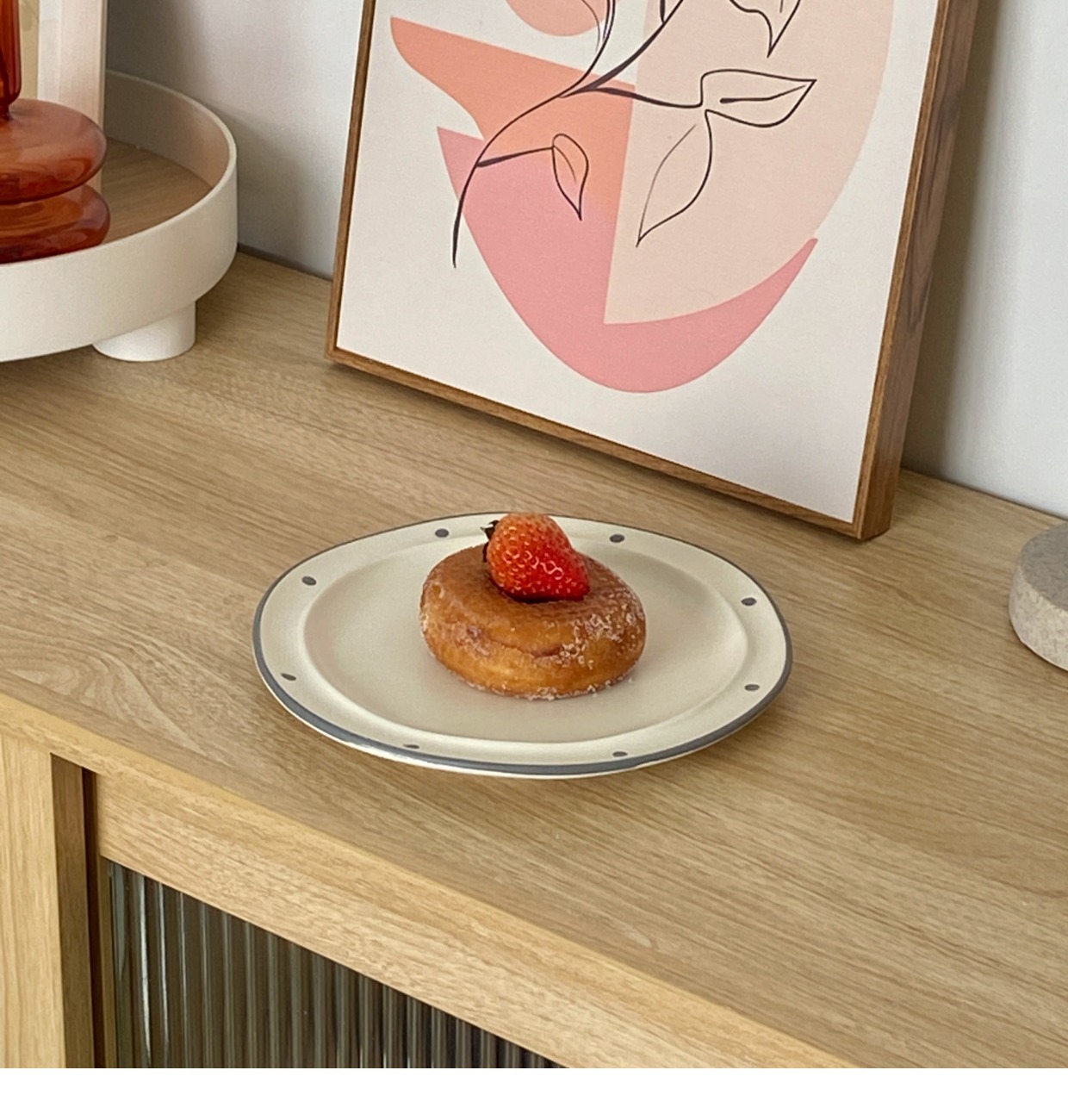 일본식 간단한 식기 한국 스타일 세라믹 케이크 플레이트 웨이브 도트 플레이트 보기 좋은 접시 고가 아침 식사 접시스토어 가기