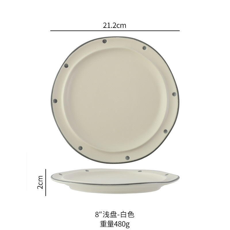 • 밀크 화이트 도트 8.5 "둥근 얕은 접시