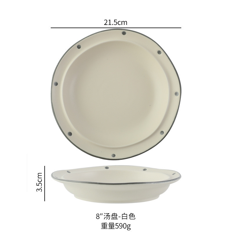 • 밀크 화이트 도트 8.5 인치 라운드 수프 플레이트