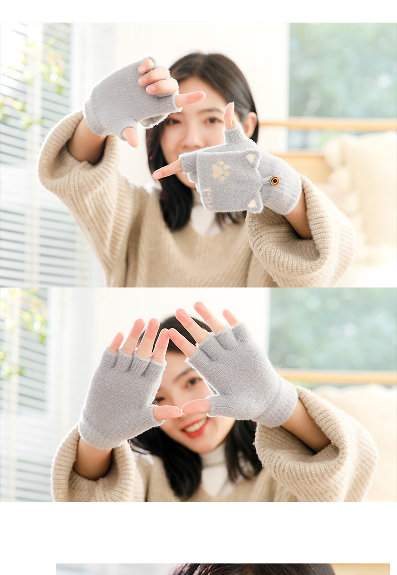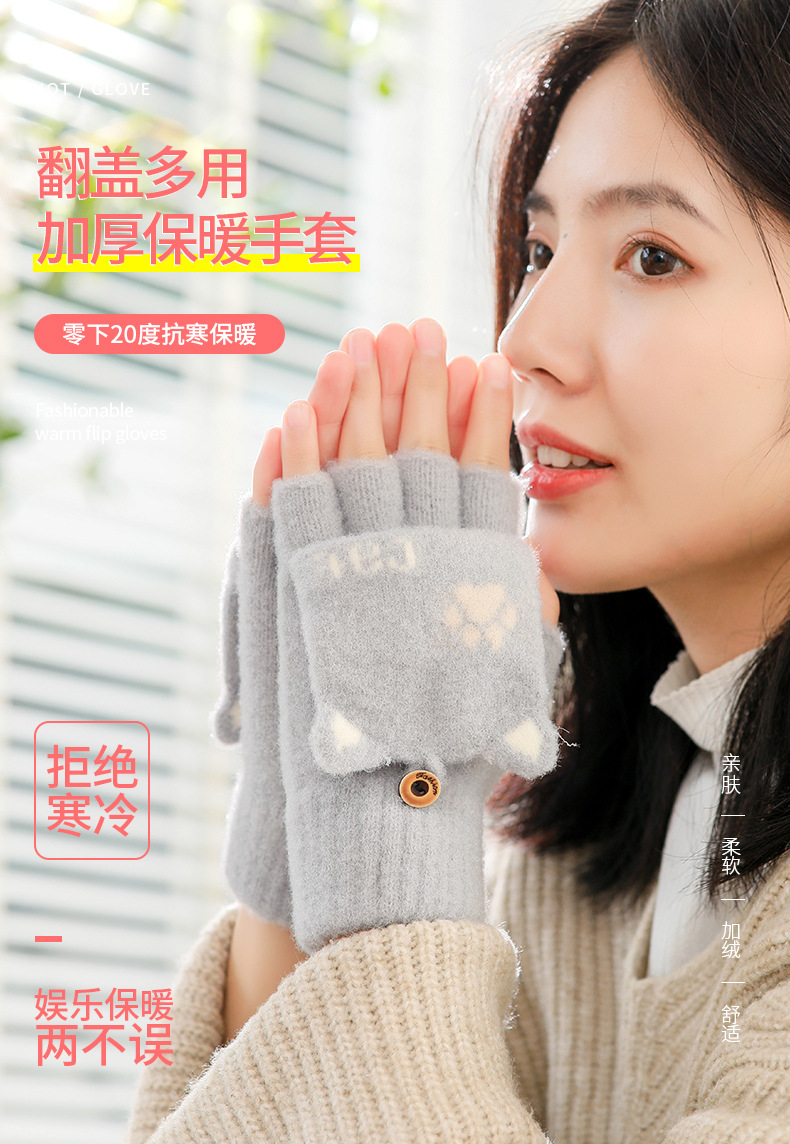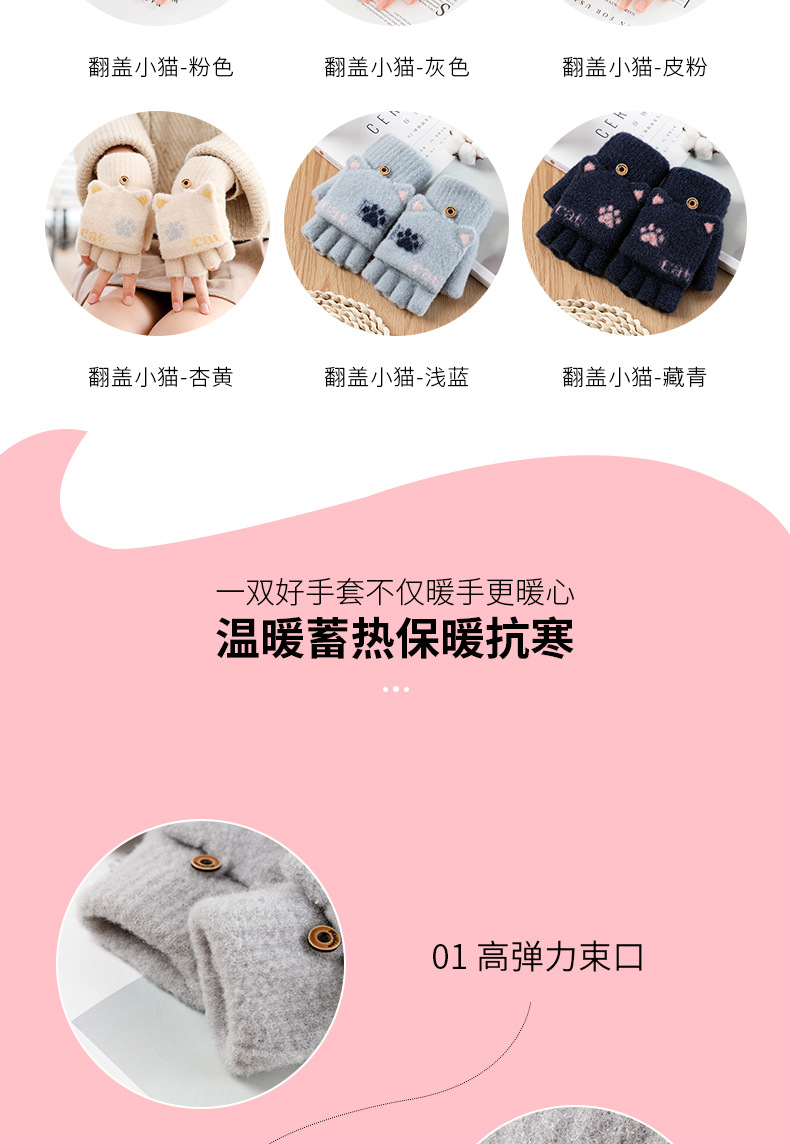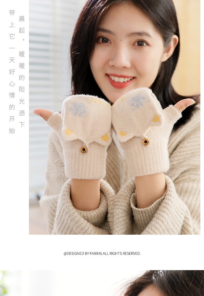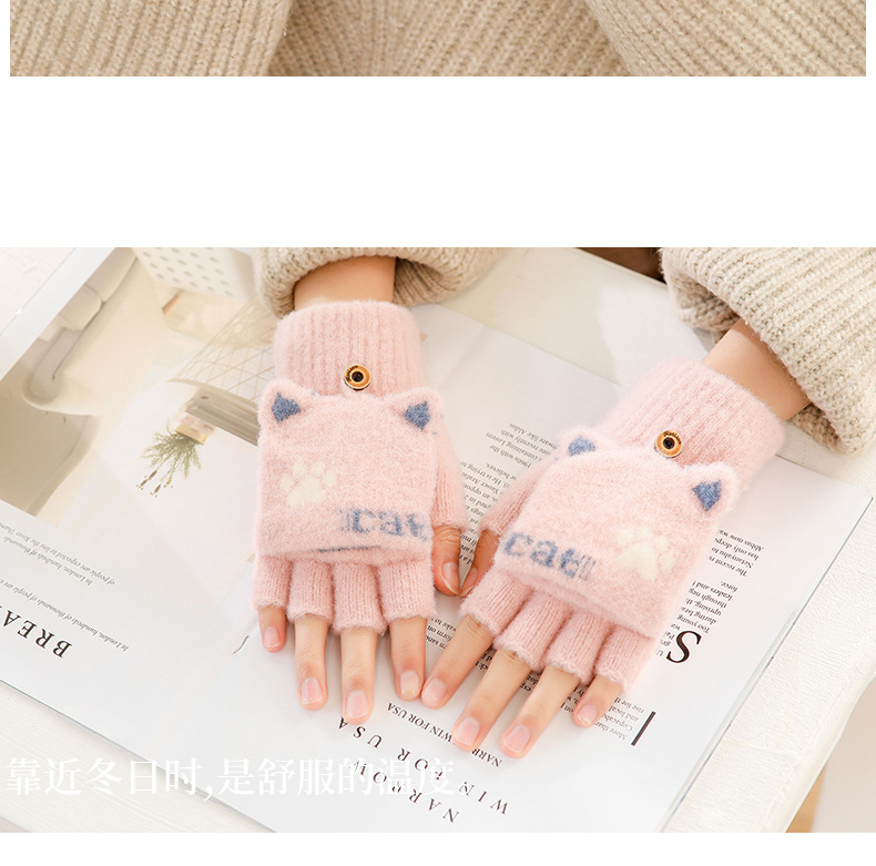스노우 쇼 장갑 여자의 겨울 귀여운 만화 어린이 반 손가락 플립 따뜻한 학생 쓰기 니트 장갑 도매스토어 가기