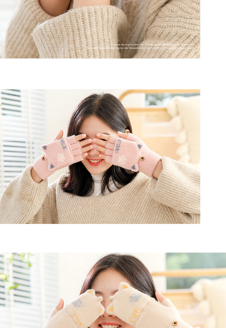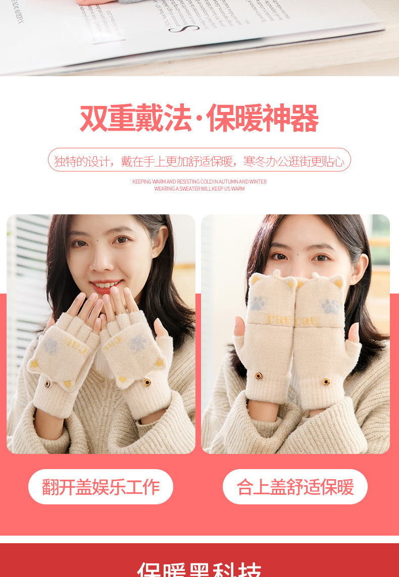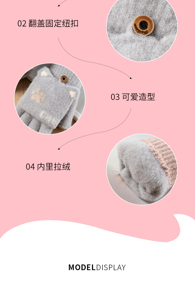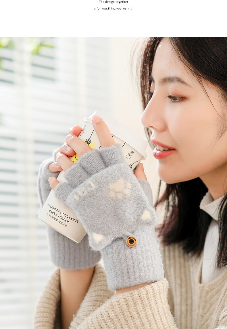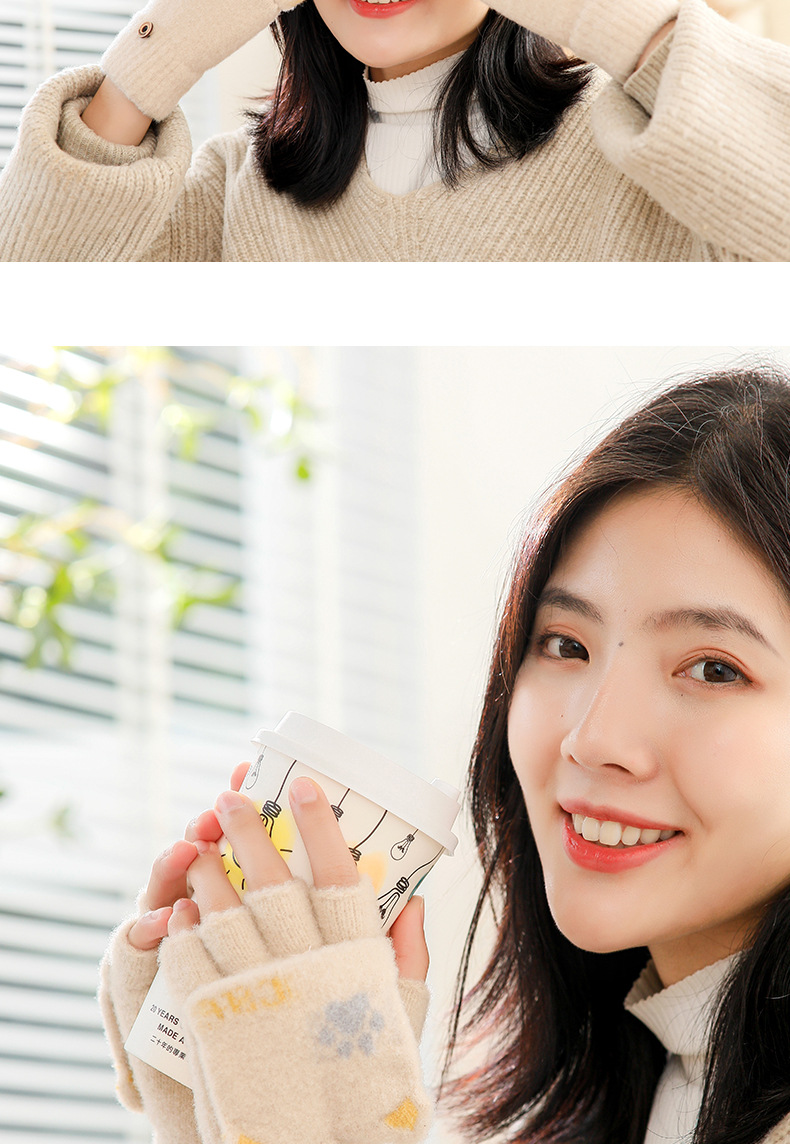 스노우 쇼 장갑 여자의 겨울 귀여운 만화 어린이 반 손가락 플립 따뜻한 학생 쓰기 니트 장갑 도매스토어 가기