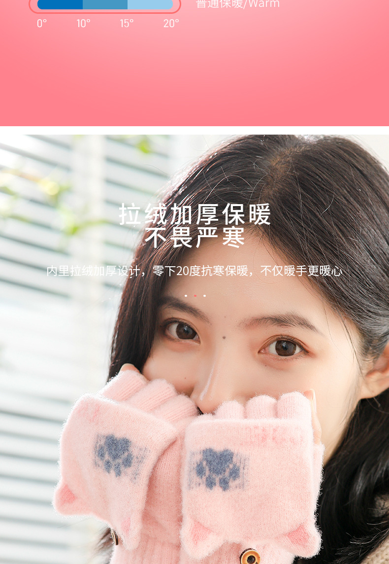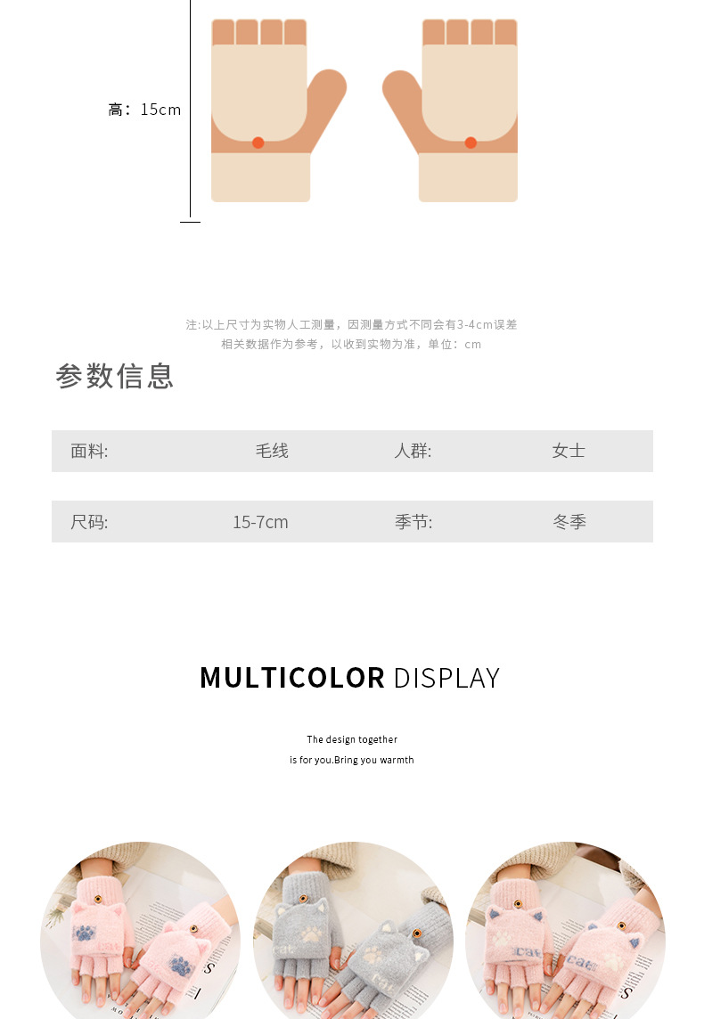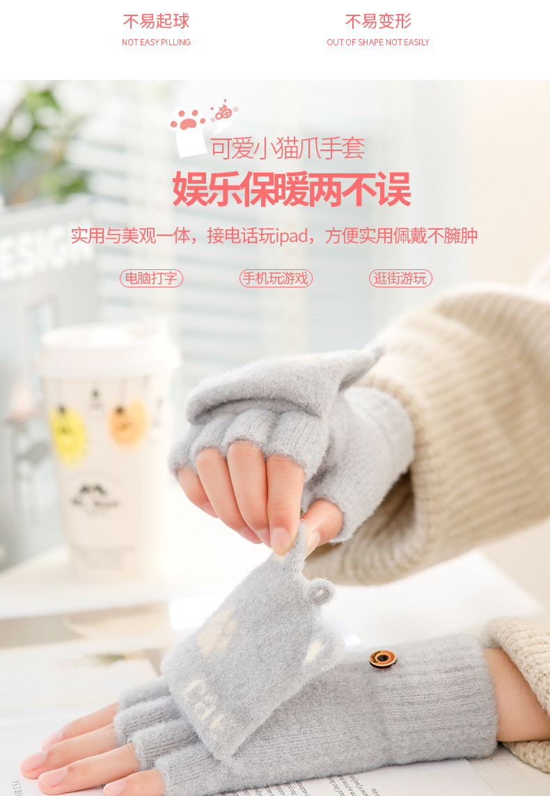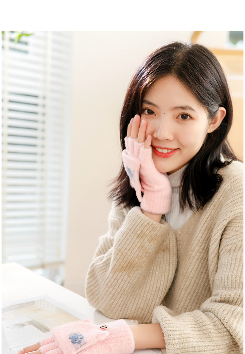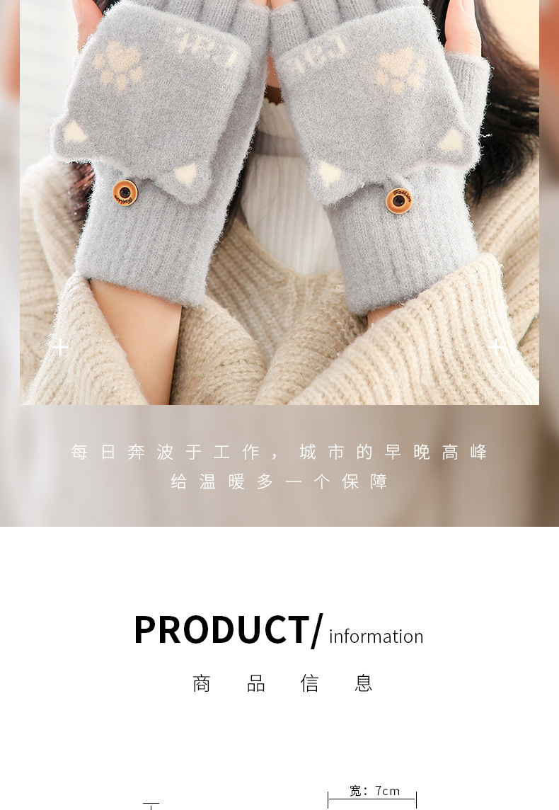 스노우 쇼 장갑 여자의 겨울 귀여운 만화 어린이 반 손가락 플립 따뜻한 학생 쓰기 니트 장갑 도매스토어 가기