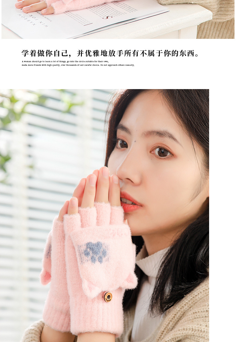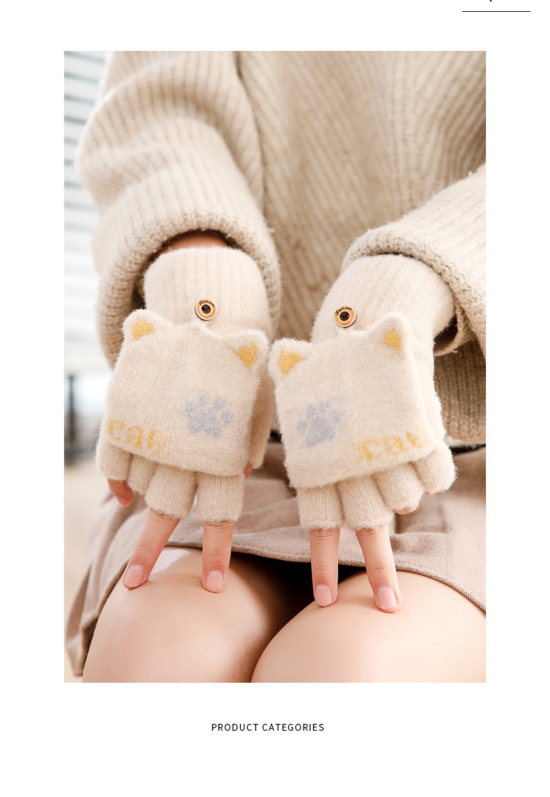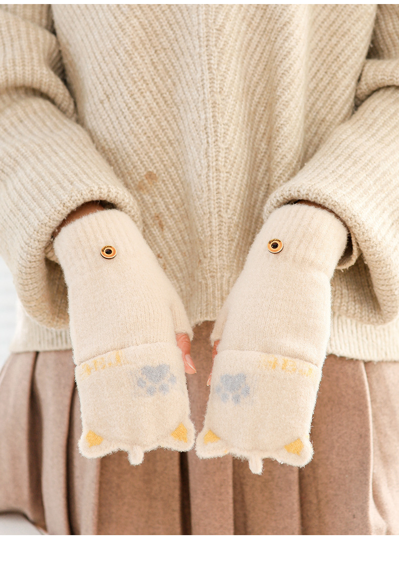 스노우 쇼 장갑 여자의 겨울 귀여운 만화 어린이 반 손가락 플립 따뜻한 학생 쓰기 니트 장갑 도매