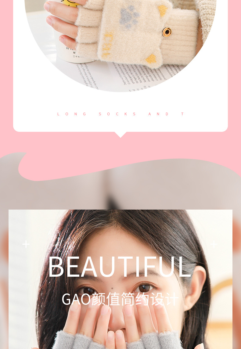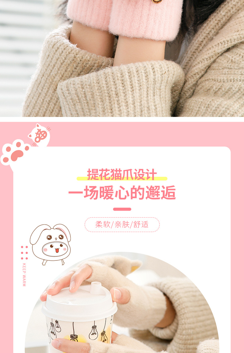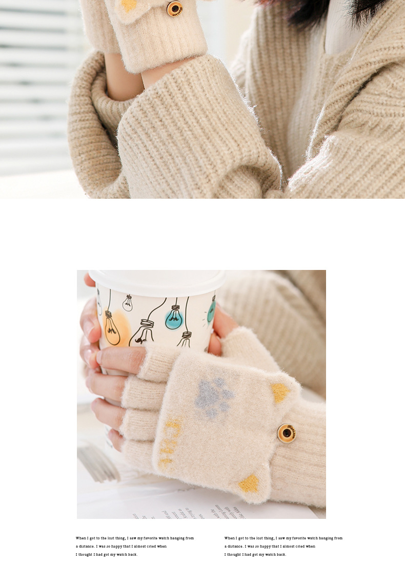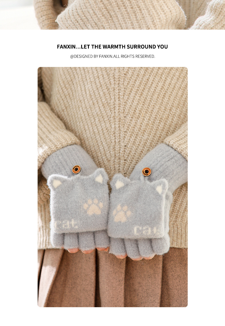 스노우 쇼 장갑 여자의 겨울 귀여운 만화 어린이 반 손가락 플립 따뜻한 학생 쓰기 니트 장갑 도매