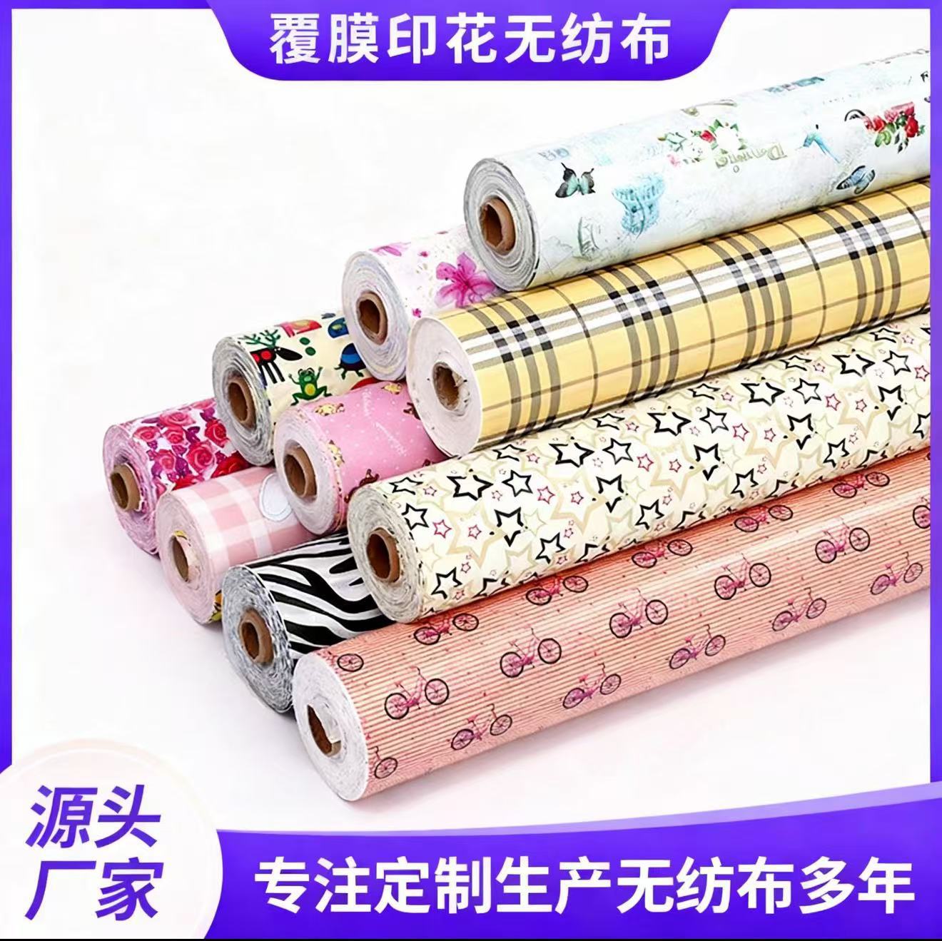 공장 재고 필름 커버 인쇄 부직포 PP 스펀 본드 부직포 보관 케이스 가방 피크닉 매트 식탁보 롤 재료스토어 가기