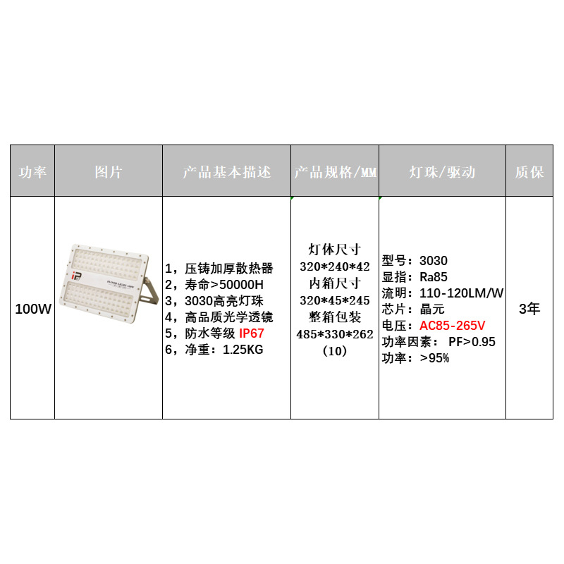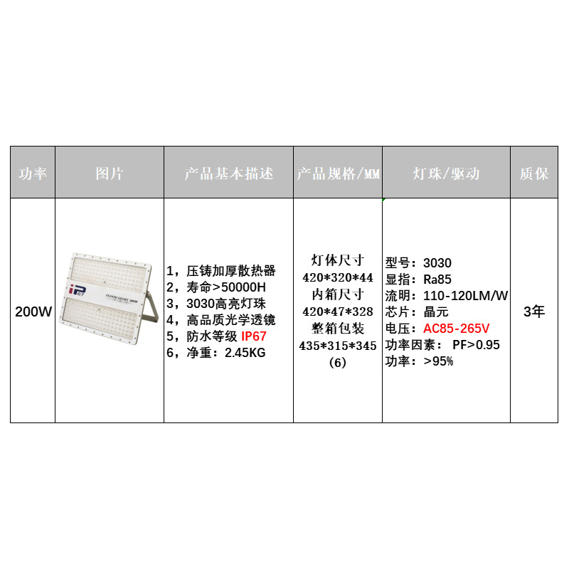 풀 파워 팬텀 투광 조명 옥외 방수 광고 도로 조명 거리 안뜰 복도 공장 투광 조명