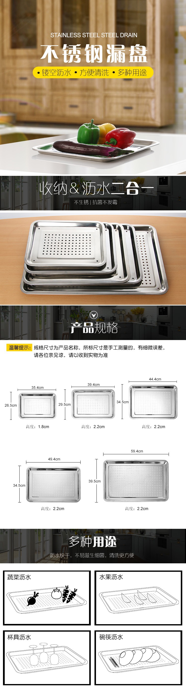 프라이어 드레인 오일 트레이 드레인 워터 필터 직사각형 티 트레이 이중 레이어 누출 플레이트 드레인 플레이트 필터 오일 트레이 심화스토어 가기