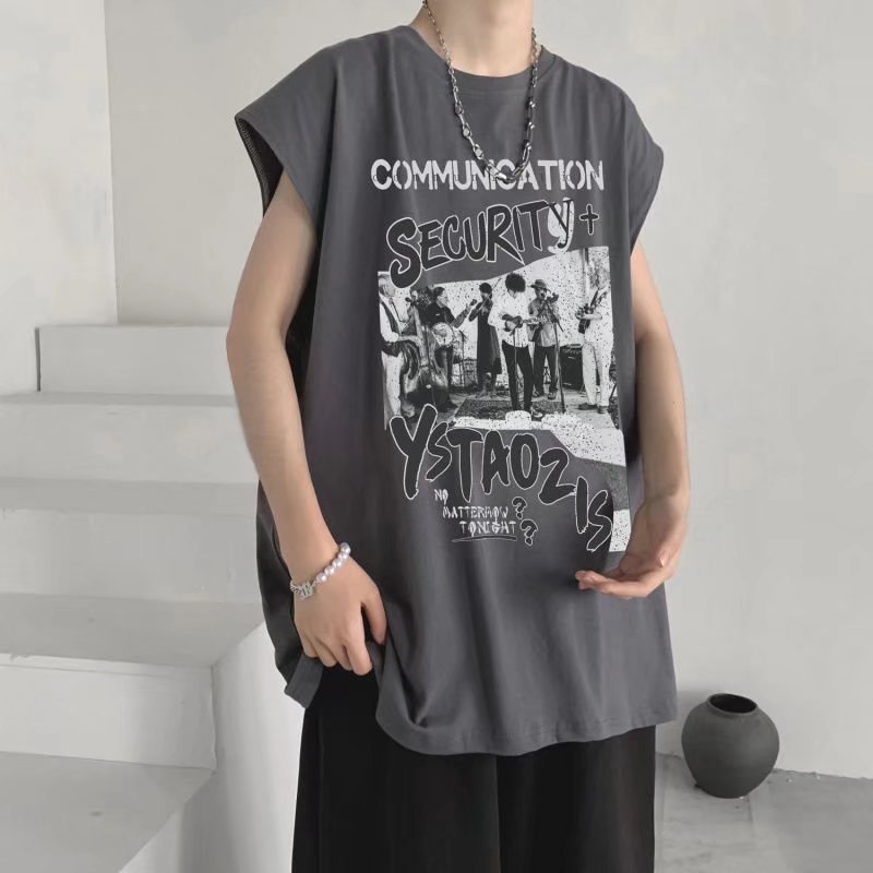 남자의 스포츠 조끼 여름 얇은 유행 브랜드 하이 스트리트 조끼 유행 느슨한 힙합 민소매 티셔츠 허들 조끼