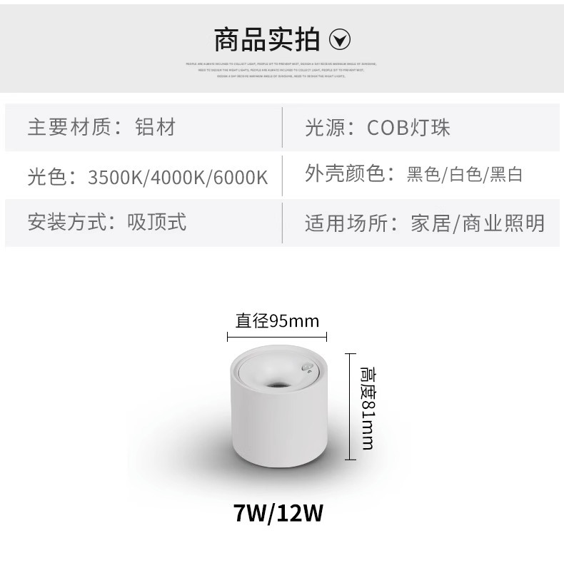 • 화이트 + 건 블랙 컵 7W 스포트라이트