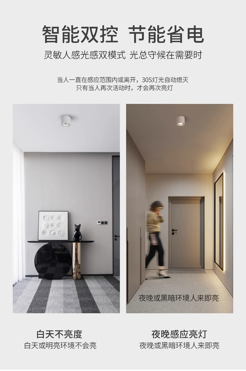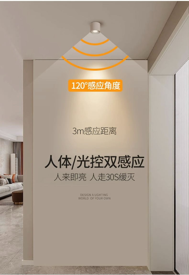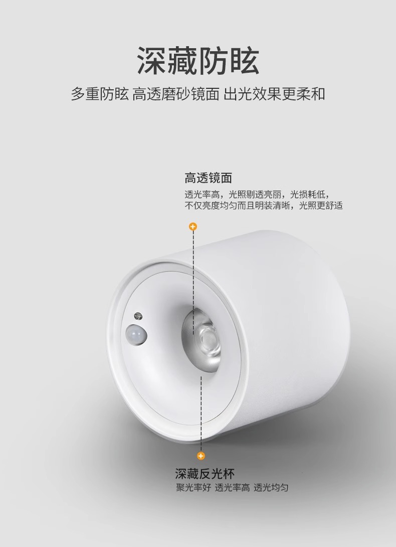 명나라 장착 유도 스포트 라이트 천장이없는 홈 베란다 통로 입구 계단 빛 감지 인간 감지 LED 눈부심 방지 스포트라이트스토어 가기