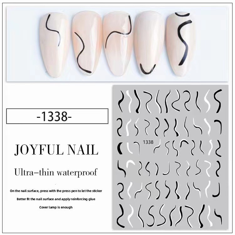 네일 아트 새로운 간단한 색상 블록 컬러 라인 스트립 접착 네일 데칼 JO1335-1340 독립 종이 카드 팩스토어 가기