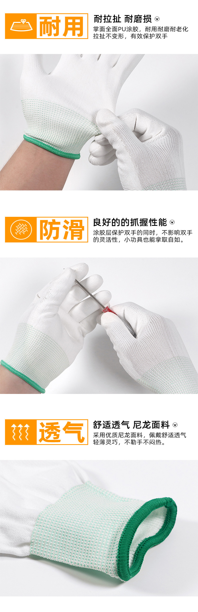 PU 코팅 손바닥 코팅 장갑 통기성 얇은 나일론 노동 보호 작업 정전기 방지 먼지가없는 흰색 담그는 미끄럼 방지 마모 방지스토어 가기