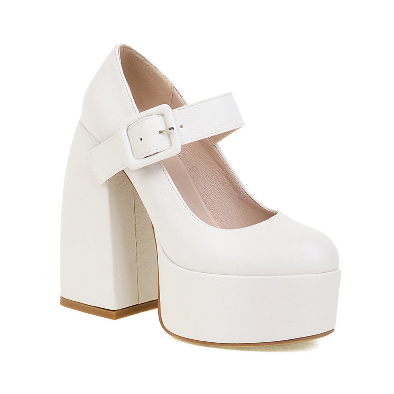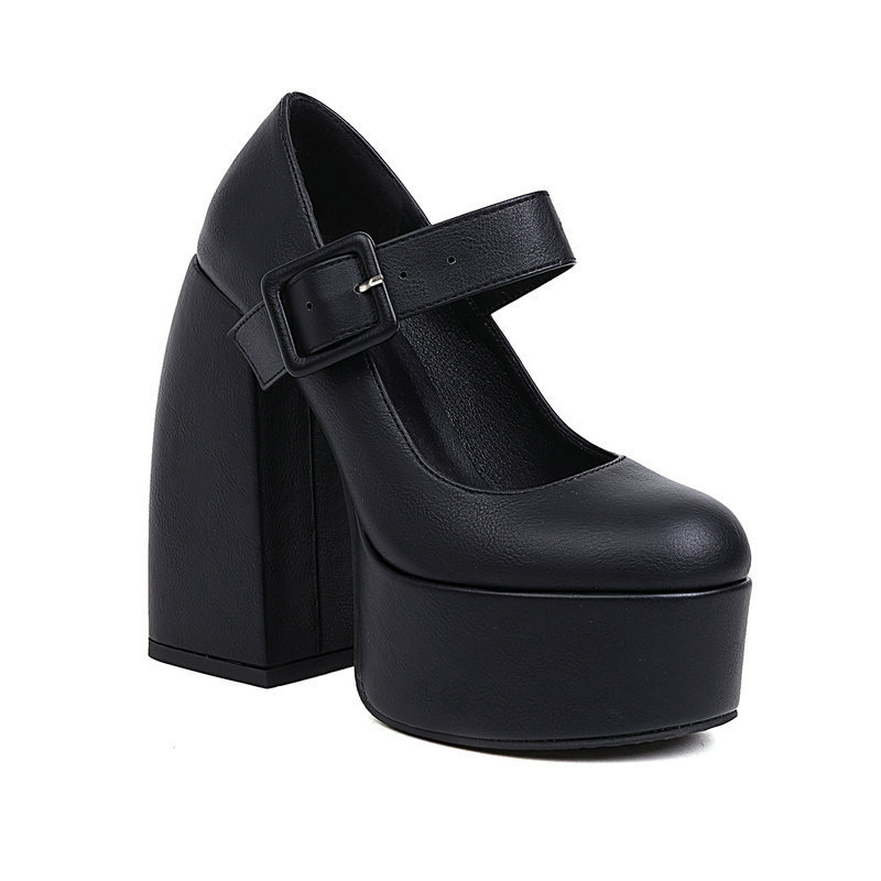 여성용 하이힐 여성용 모양의 힐 청키 힐 메리 제인 신발 방수 플랫폼 라운드 발가락 얕은 입 여성용 싱글 힐스토어 가기