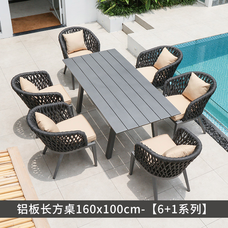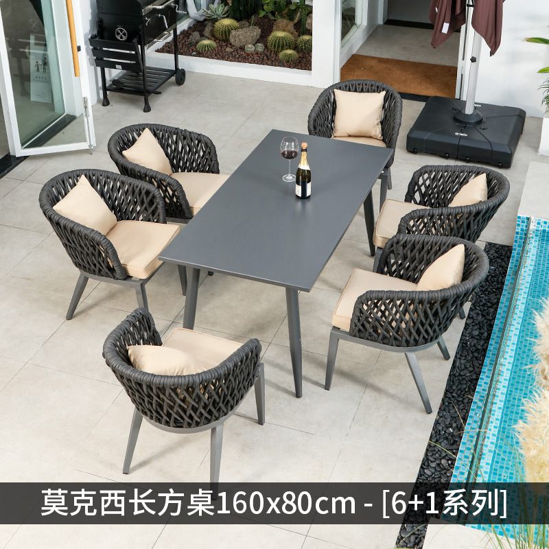 야외 테이블과 의자 조합 빌라 가든 노르딕 테라스 식탁 로프 식탁 의자 안뜰 디자이너 야외 의자