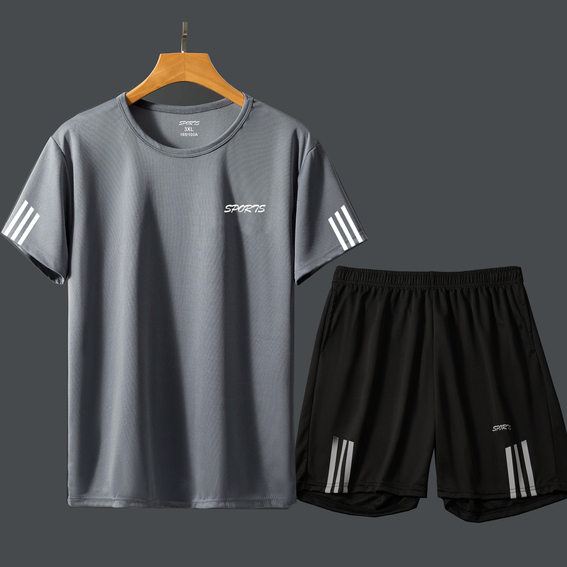 남성용 통기성 스포츠 세트 여름 새로운 반팔 남성용 러닝 커플 스포츠웨어 하프 반바지 속건 의류