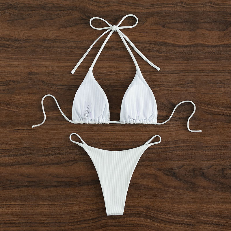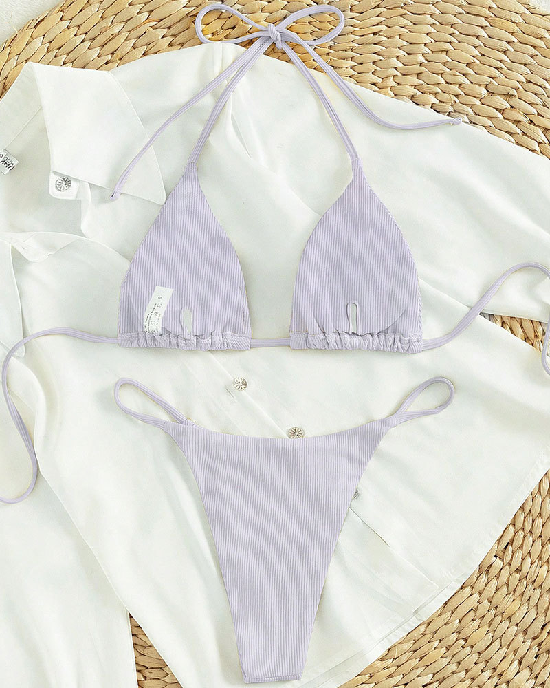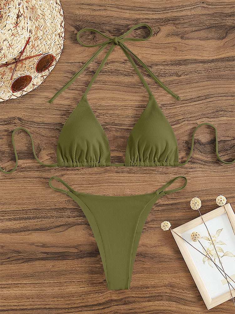 2025 여름 유럽과 미국의 대외 무역 신제품 홀터넥 비키니 멀티 컬러 수영복 섹시한 레이스 업 비키니 여성 스플릿 수영복