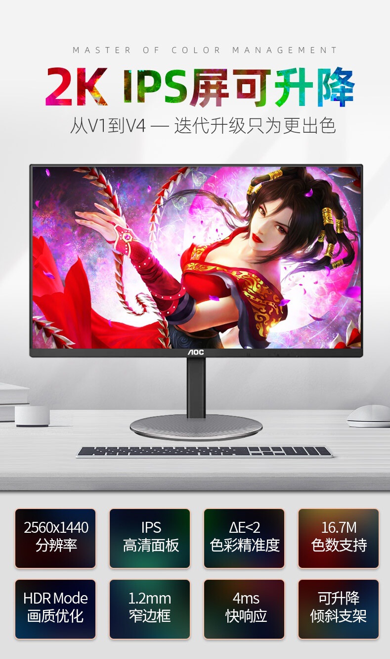 TPV (AOC) 2K HD 27 "디스플레이 IPS 넓은 시야각 75Hz 슬림 외관 섹션에 적용 가능스토어 가기