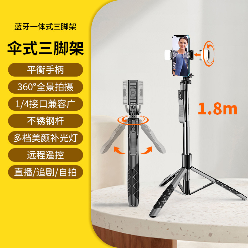 • 블랙 [조명 뷰티 플래그십] 연장 1.8 m 알루미늄 합금 셰이커 블루투스 원격 제어 꾸준한 비트 핸들 더블 라이트