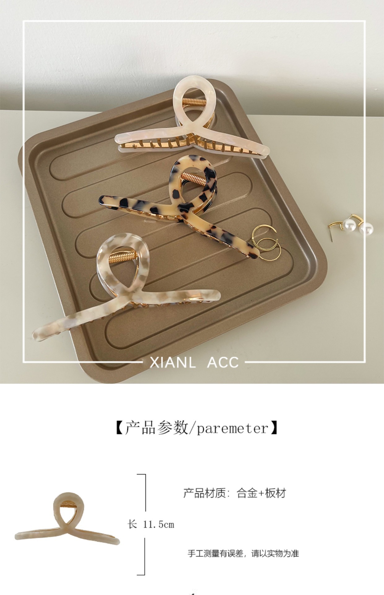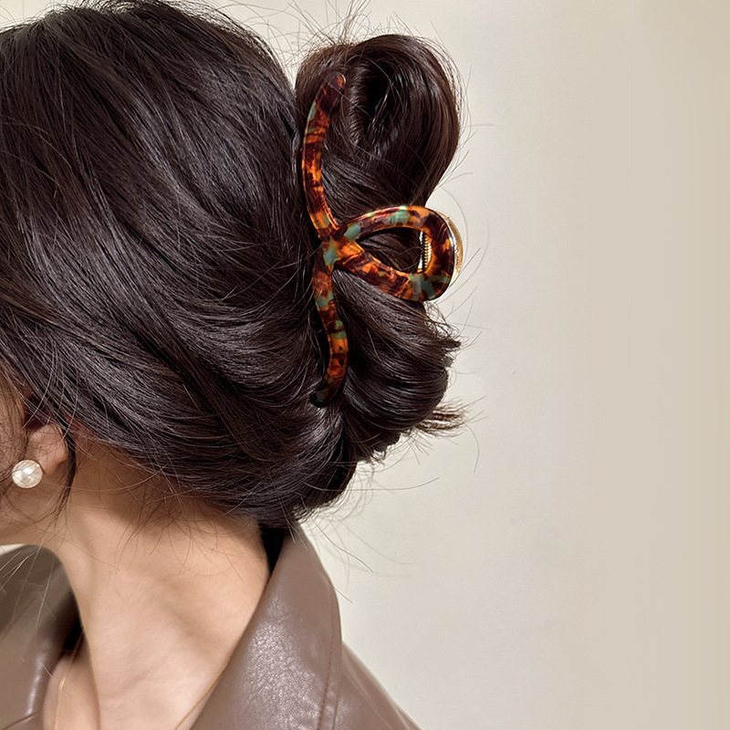 여성용 아세테이트 고급 크로스 클립, 여름용 대형 샤크 클립, 뒷머리용 헤어 클립, 2024 신상 클립 헤어 액세서리스토어 가기