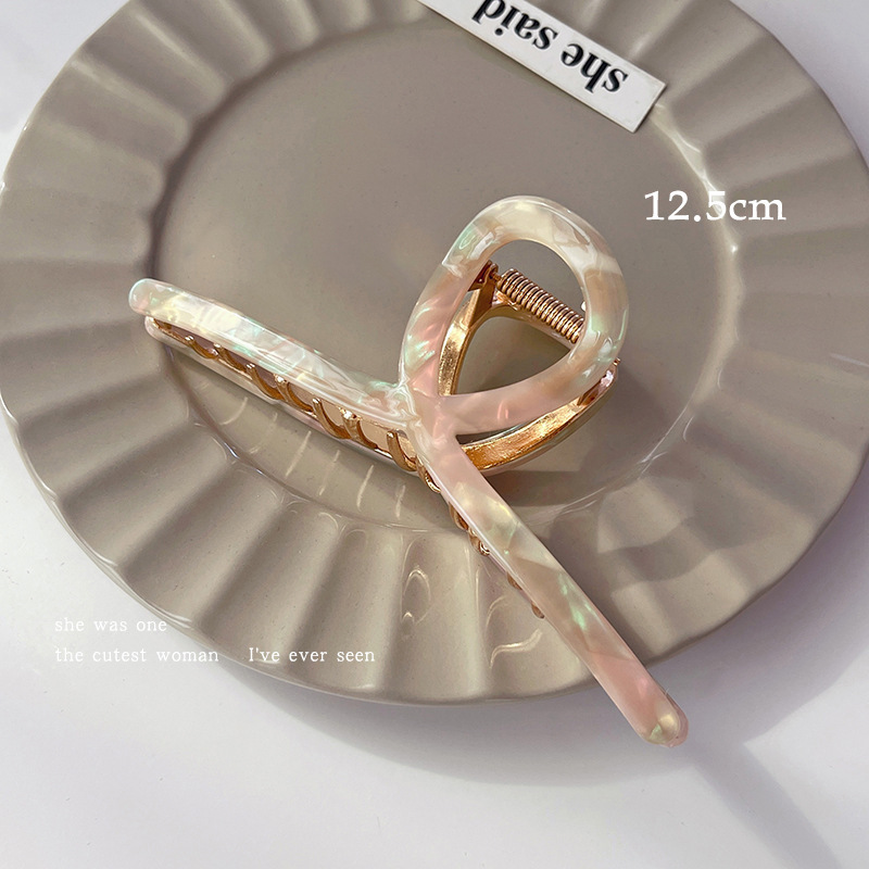 여성용 아세테이트 고급 크로스 클립, 여름용 대형 샤크 클립, 뒷머리용 헤어 클립, 2024 신상 클립 헤어 액세서리