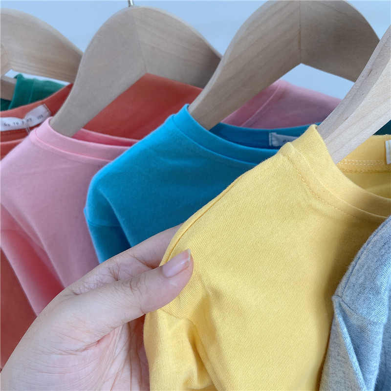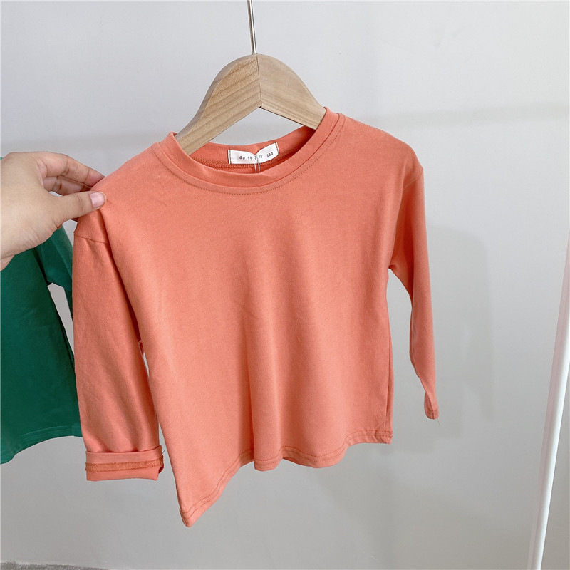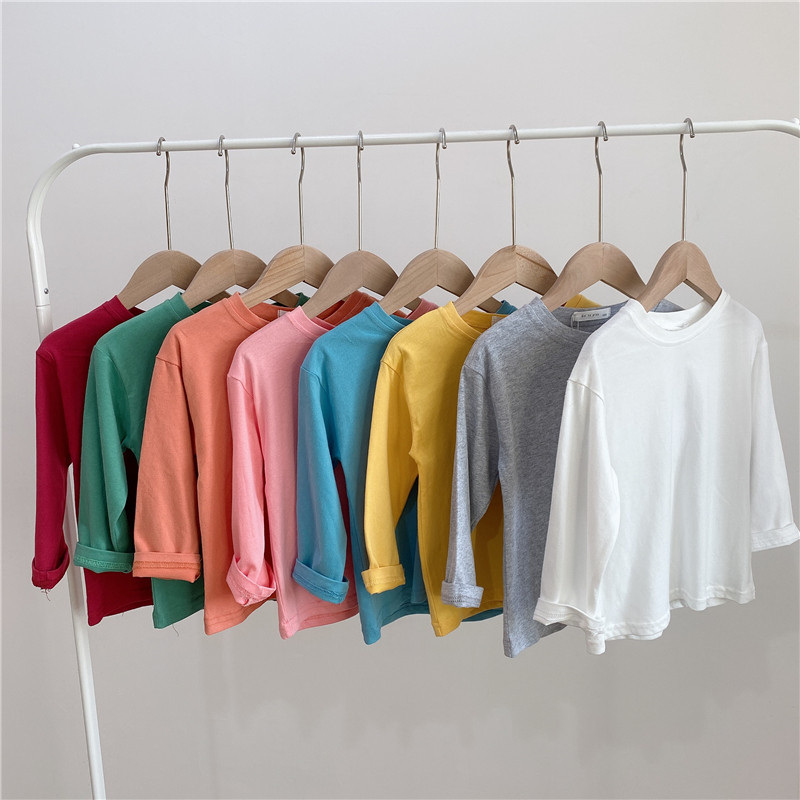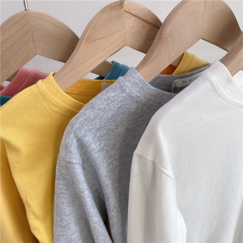 2022 가을과 겨울 아동면 라운드 넥 단색 긴팔 티셔츠 소년 소녀 베이비베이스 셔츠 소녀 봄과 가을스토어 가기