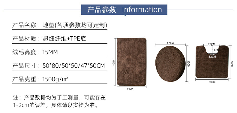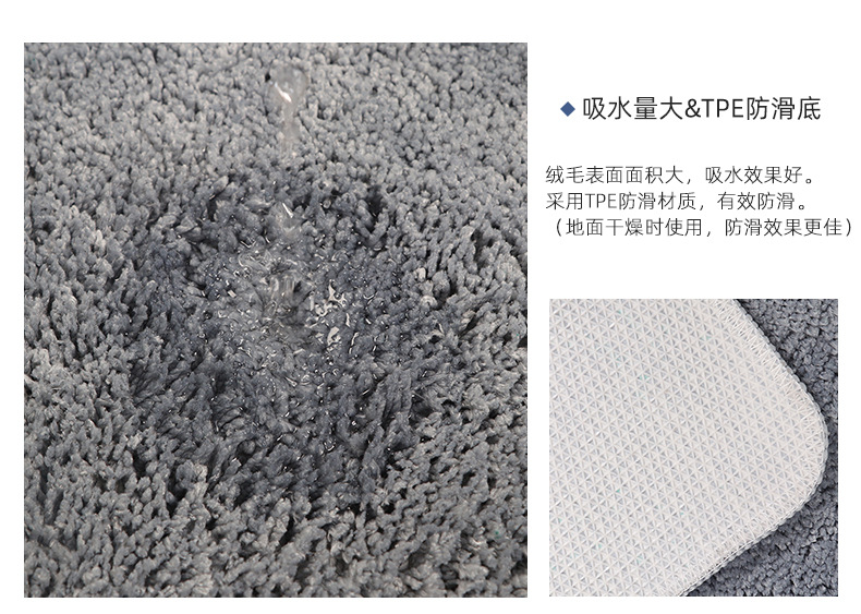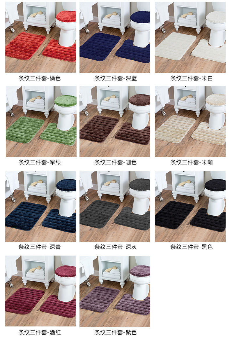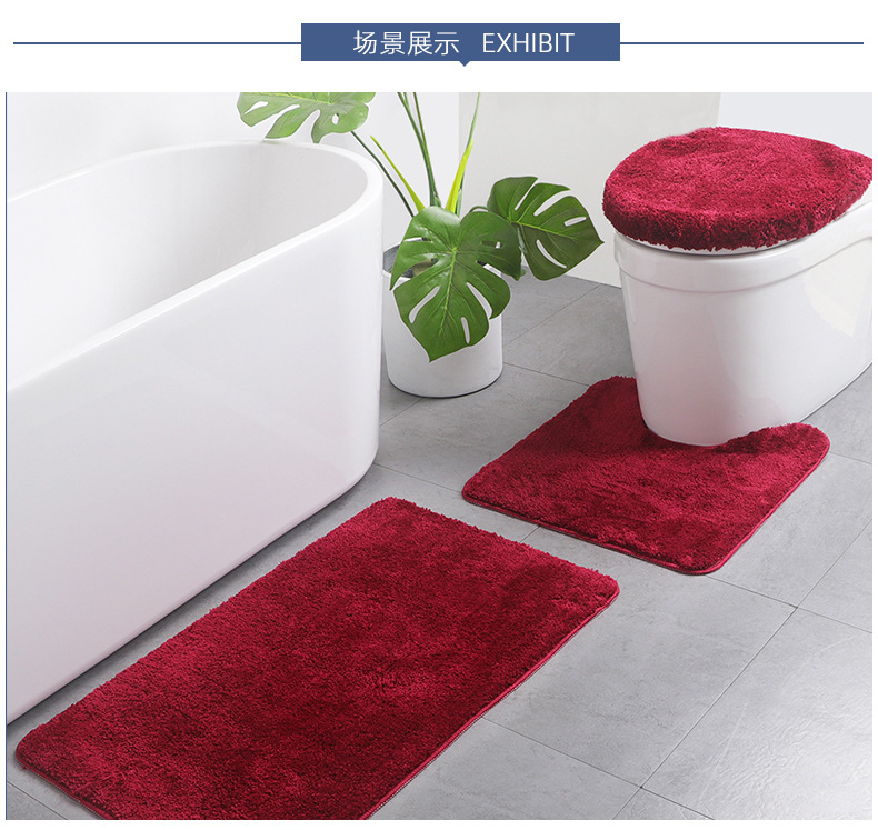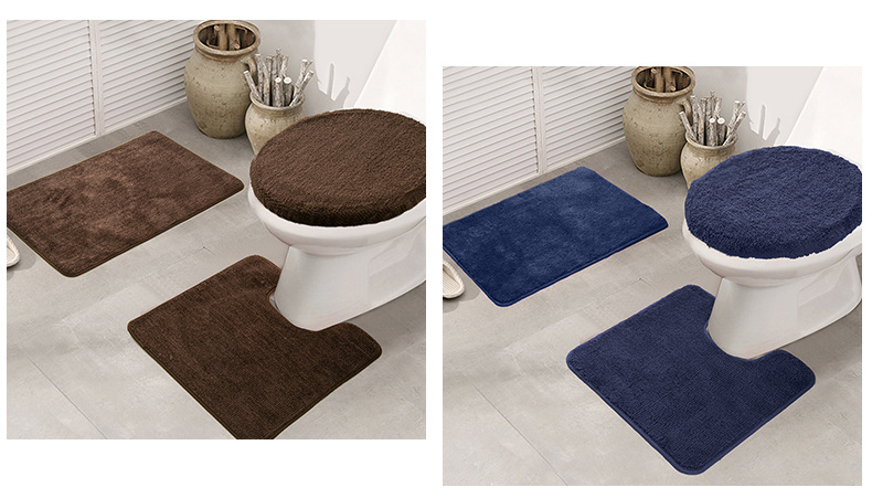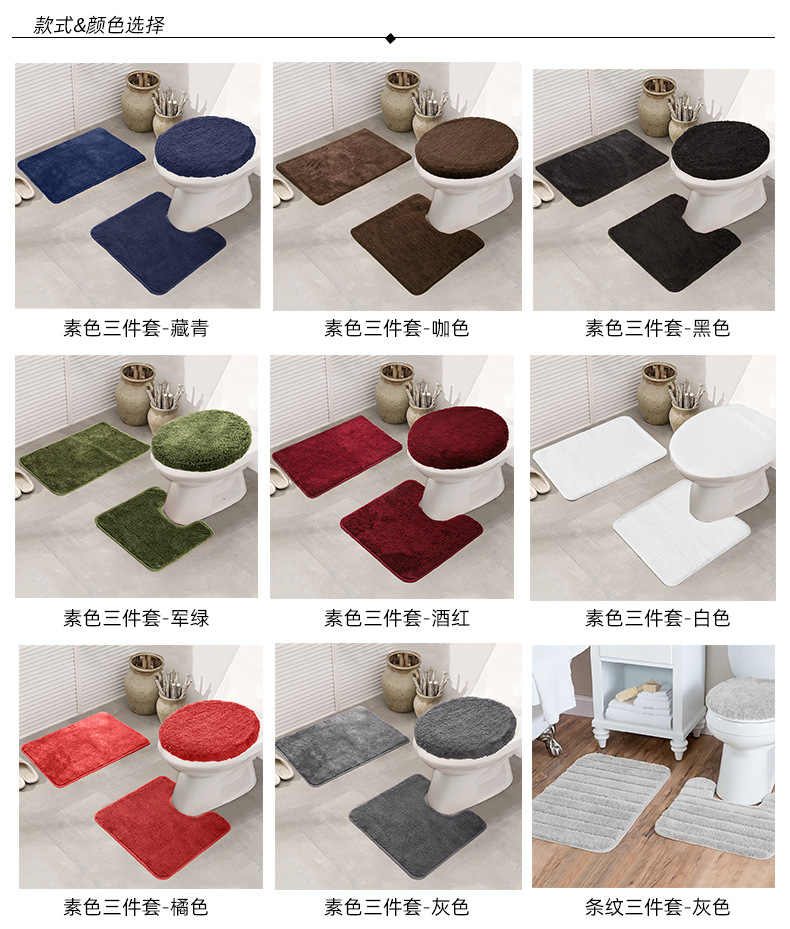 크로스보더 무지 욕실 변기 매트 3종 세트, 화장실 흡수 매트, 두꺼운 미끄럼 방지 플로킹 발매트, 욕실용스토어 가기