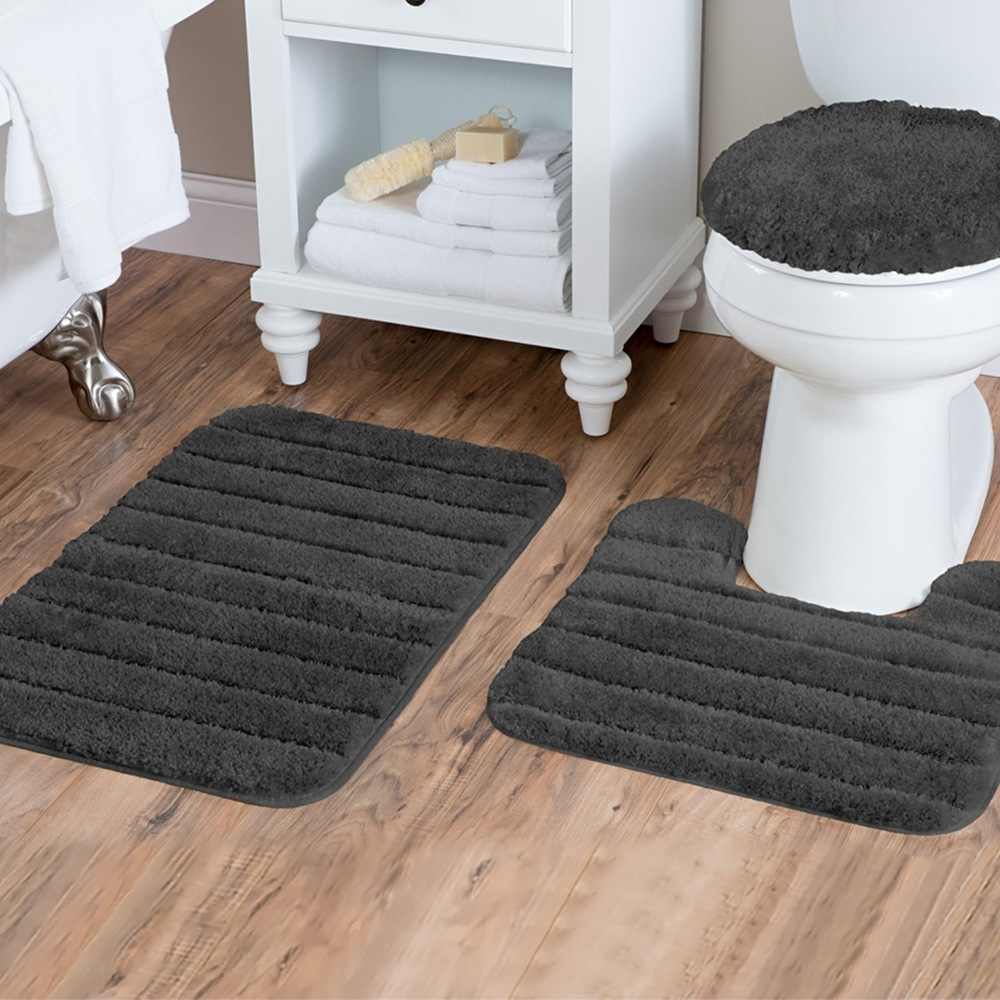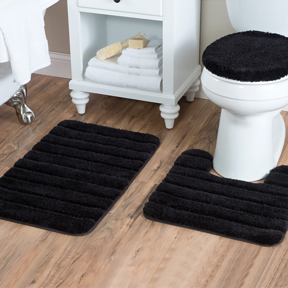 크로스보더 무지 욕실 변기 매트 3종 세트, 화장실 흡수 매트, 두꺼운 미끄럼 방지 플로킹 발매트, 욕실용