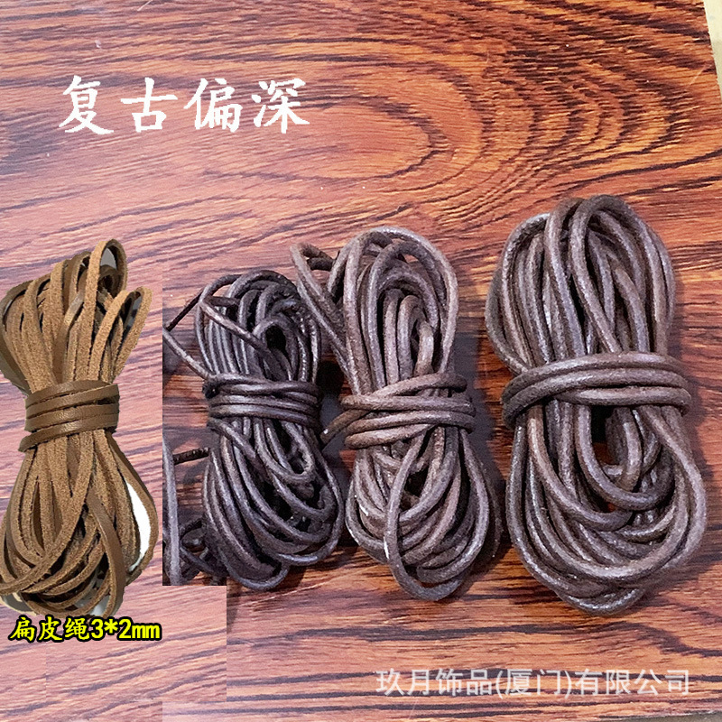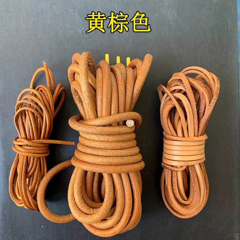 정품 가죽 1층 소가죽 로프, 원형 로프, 플랫 가죽 로프, 오리지널 컬러 베지터블 태닝 가죽 DIY 팔찌 태그, 컨베이어 벨트 백 스트랩, 줄넘기스토어 가기
