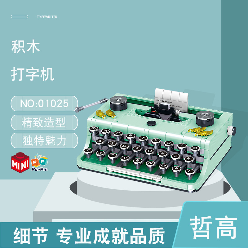 Ze Gao MINI01025 크리 에이 티브 레트로 그린 타자기 어린이 교육 조립 빌딩 블록 장난감 선물 LIN07스토어 가기