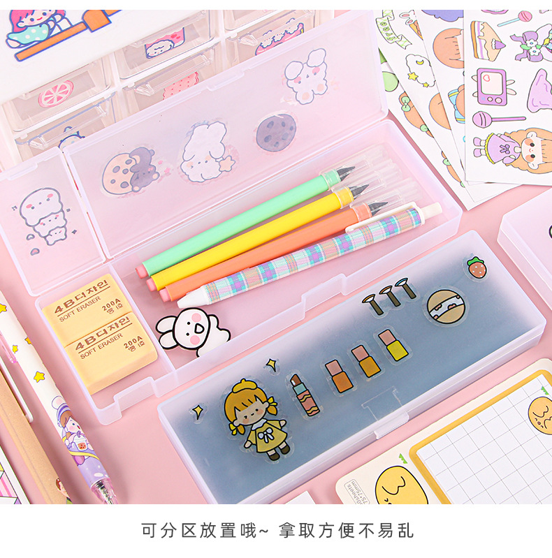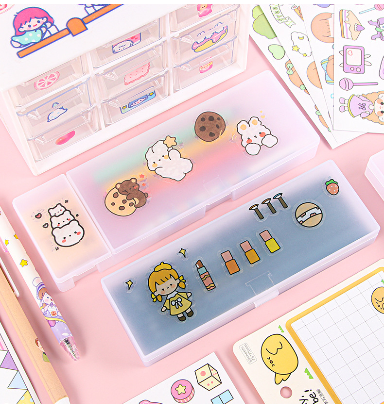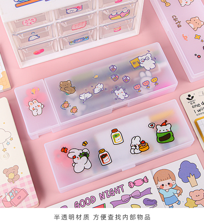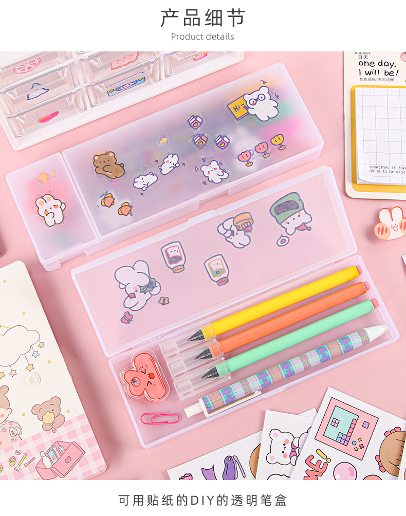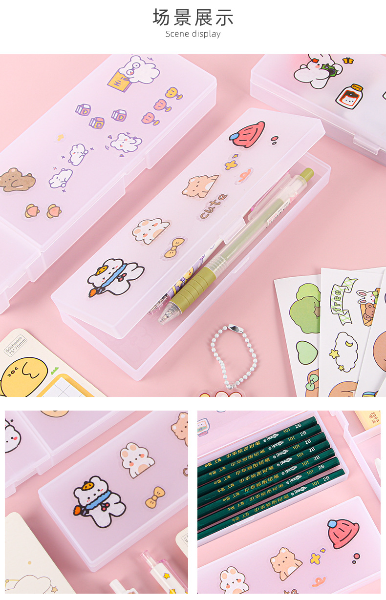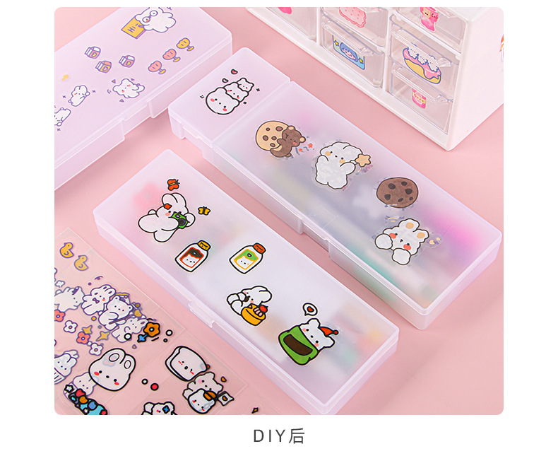 스타일 투명 젖빛 필통 PP 간단한 문구 상자 DIY 다기능 학생 플라스틱 문구 보관함스토어 가기