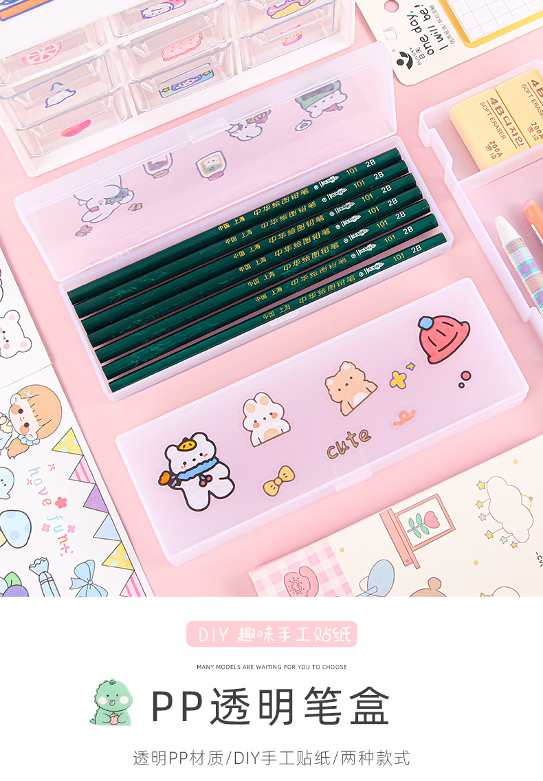 스타일 투명 젖빛 필통 PP 간단한 문구 상자 DIY 다기능 학생 플라스틱 문구 보관함