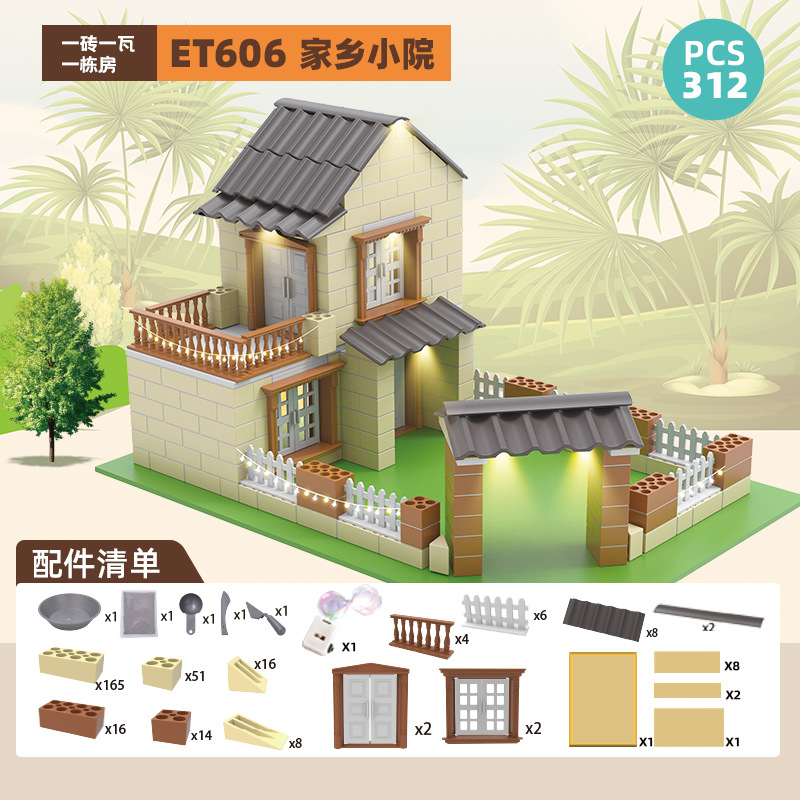 어린이 메이슨 수제 DIY 캐빈 빌딩 빌라 안뜰 심기 시뮬레이션 미니 벽돌 조립 하우스