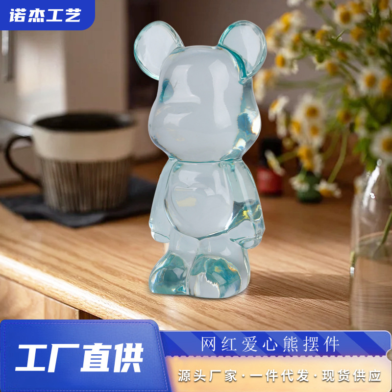 크리스탈 투명 곰 장식품 유행 홈 장식 수지 조각 기계 곰 쓴 곰 인형 사이버 연예인 테디 베어