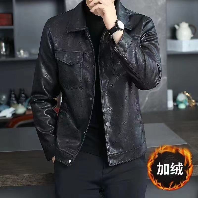 2022 새로운 남성 가죽 자켓 옷깃 봄과 가을 싱글 코트 남성 코트 네트 레드 라이브 공장 재고스토어 가기