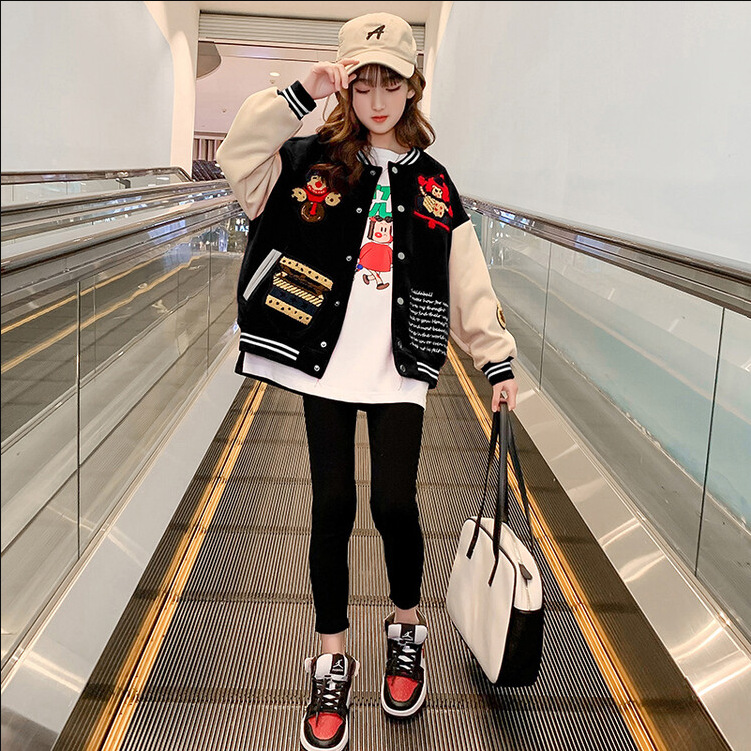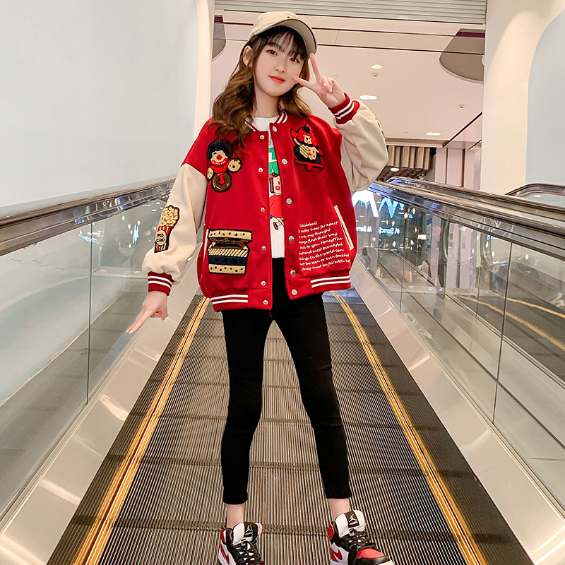 여자 야구 세트 재킷 봄 2023 새로운 서양 스타일 어린이 봄과 가을 인터넷 인기 유행 재킷 튀김 거리 옷 패션스토어 가기