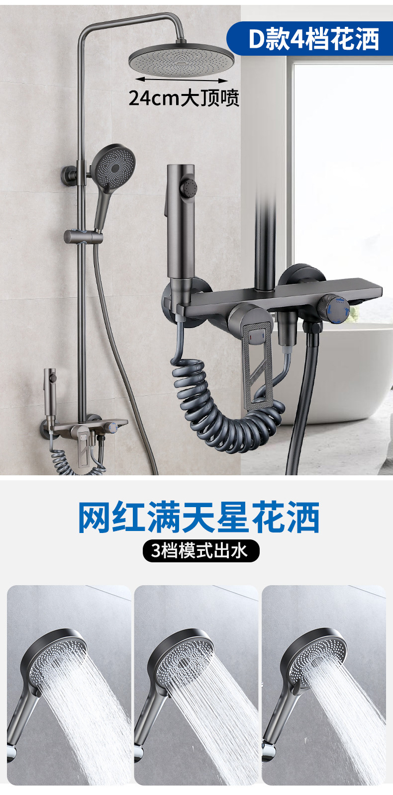인터넷 연예인 모든 구리 비 샤워 세트 현대 가정 뜨겁고 차가운 샤워 4 단 압축 목욕 욕실 노즐