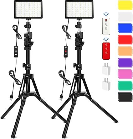 • 사각 램프 2개 + 플로어 스탠드 2개 + 금속 팬/틸트 2개 + 리모컨 2개 + 어댑터 2개 + 9색 18색