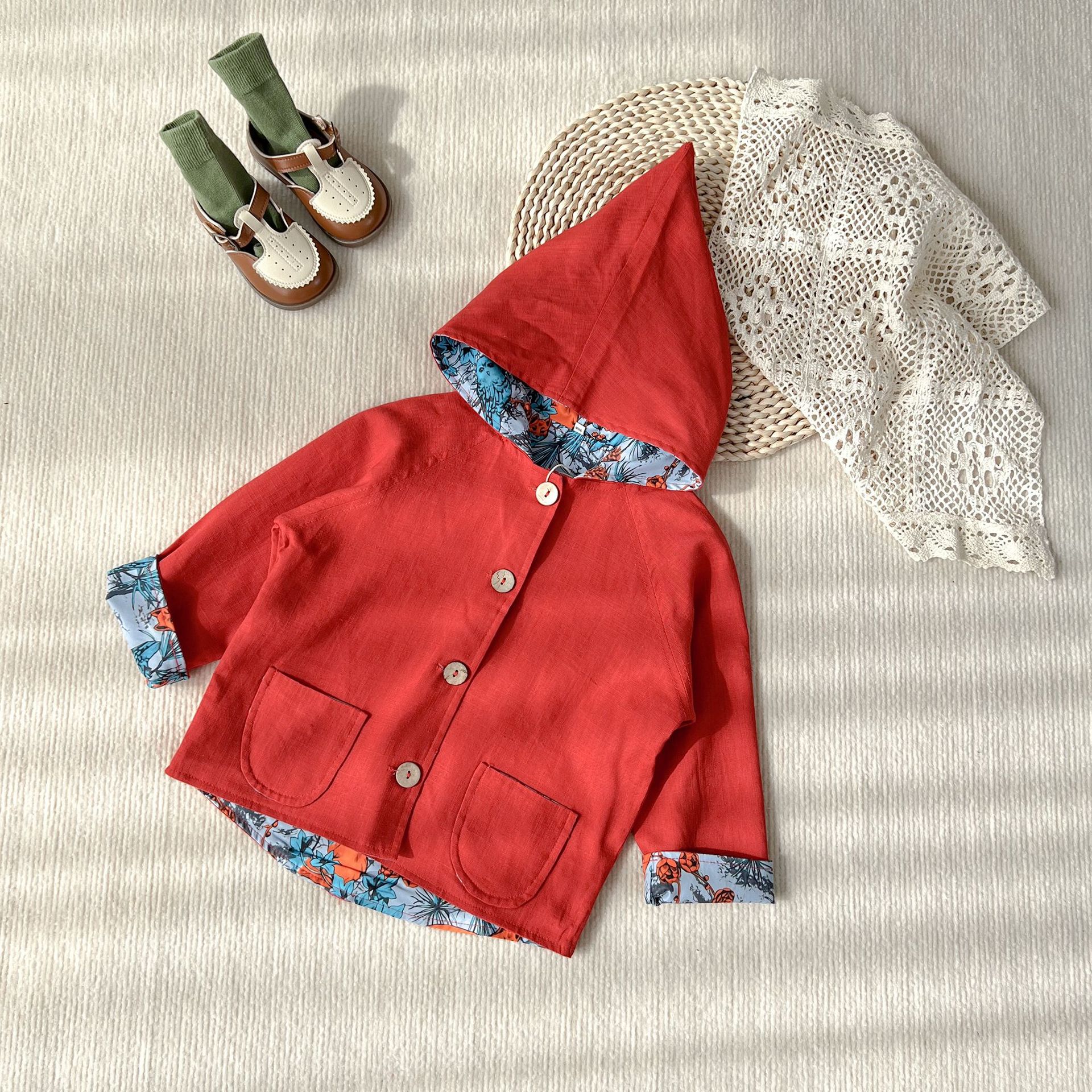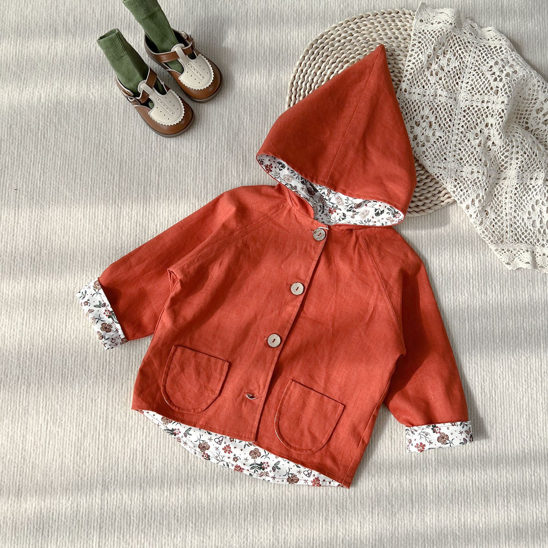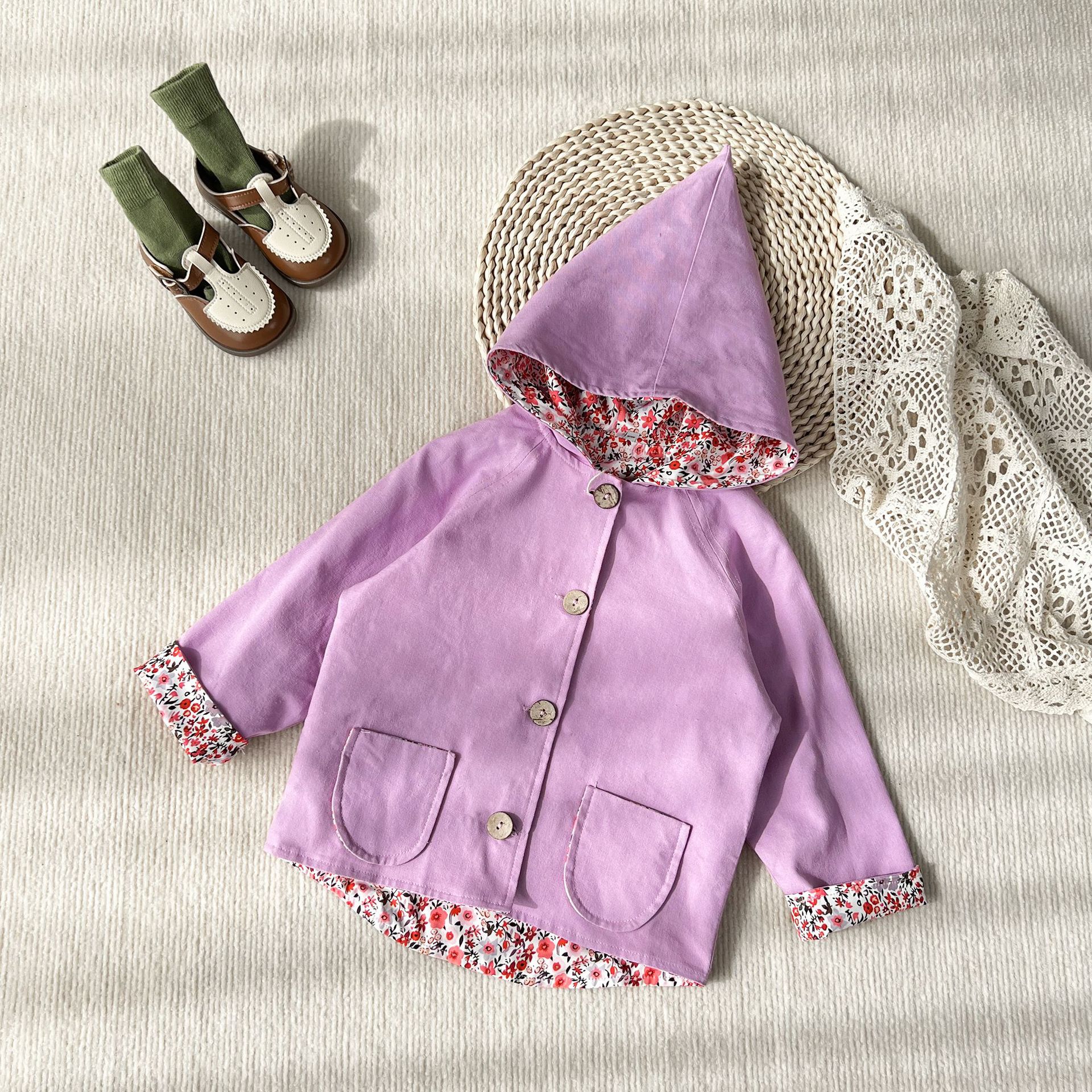 어린이 코트 2025 가을 유행 한국 스타일 큰 아이들 프린트 귀여운 요정 모자 얇은 코트 남아용 재킷스토어 가기