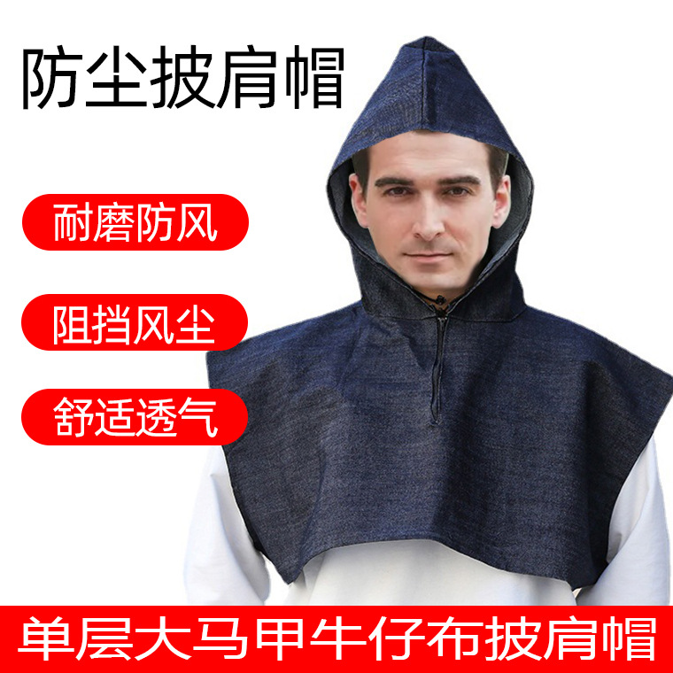 粉尘场所车间等。00459#单层牛仔布马甲披肩帽_03.jpg