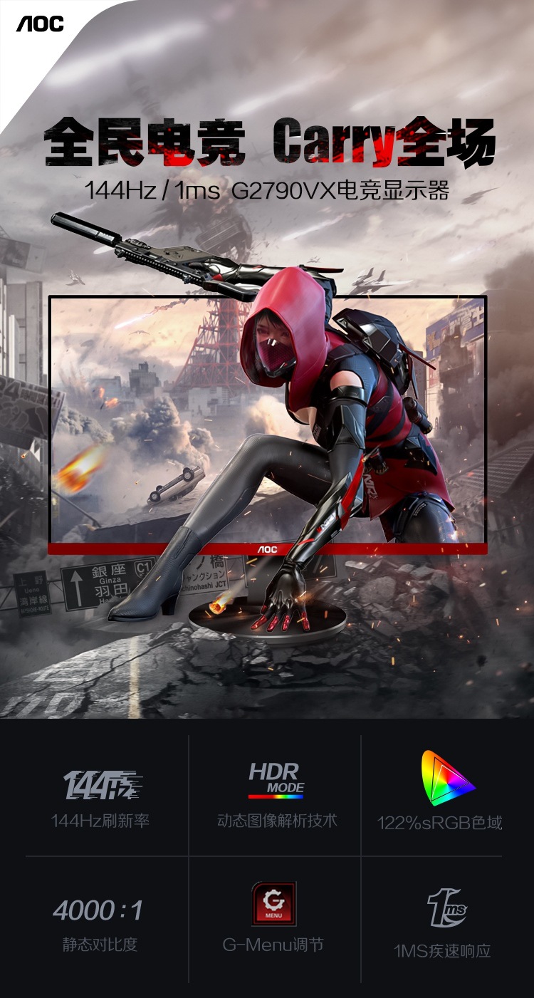 AOC 27 인치 컴퓨터 모니터 144Hz 1ms HDR 기술 낮은 푸른 빛 눈 보호 화면에 적합스토어 가기