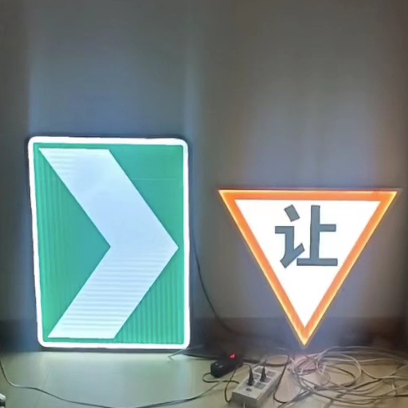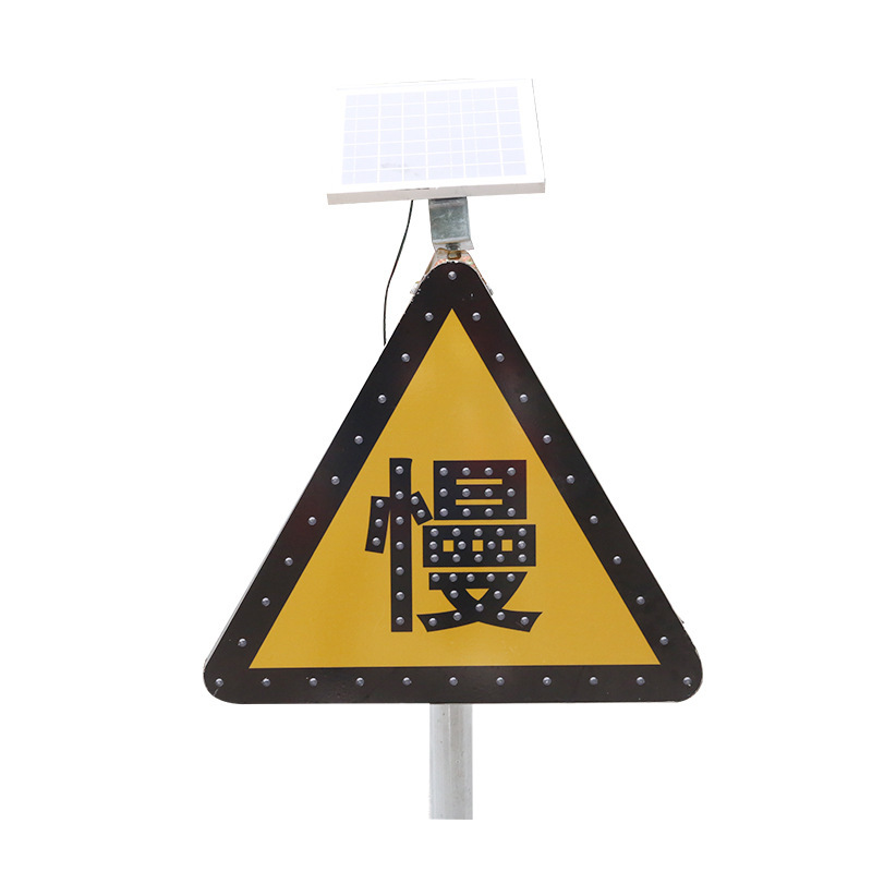 조명이 있는 도로 교통 표지판, 태양광 공사 교통 안전 경고 표지판, 안전 표지판, 지시 표지판